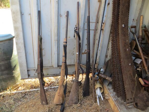 Dette er blot et udpluk af de mange hjemmelavede geværer medarbejderne hos Western Safaris har konfiskeret.