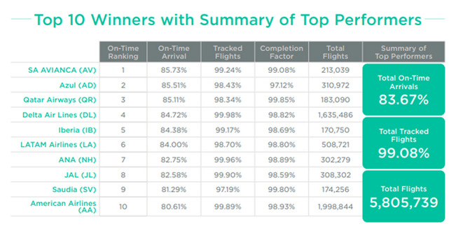 De mest punktlige flyselskaber