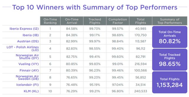 Det bemærkelsesværdige ved KLM går ud over rangordningen; de har fløjet flere gange end nogen anden på top 10-listen over præcise flyvninger. Med imponerende 240.533 flyvninger har KLM betydeligt flere ture end Vueling, der er det selskab, der har fløjet næstflest gange med i alt 216.594 ture. Dette understreger KLMs imponerende præstation og kapacitet til at bevare pålidelighed, selv med en betydelig mængde flyvninger