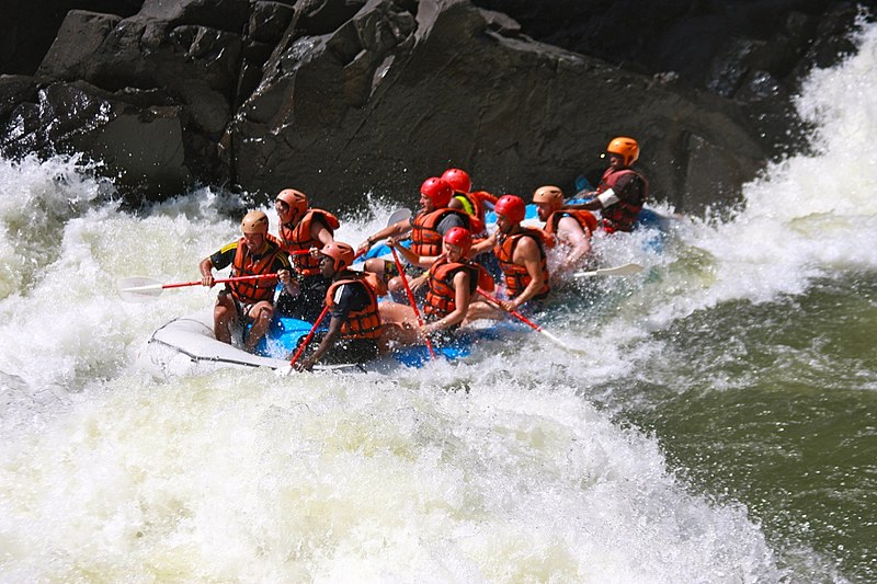På Zambezifloden erbjuds en av världens mest ultimata white-water rafting-upplevelser där man i stora gummibåtar seglar från vattenfallet och nerför 23 så kallade rapids. Det är en av de mest populära upplevelserna kring Victoria Falls där man upplever några av de vackraste omgivningarna som inte är möjliga att se på andra sätt. Är man erfaren är det också möjligt att göra turen med kajak. Om man vill komma i vattnet finns det också möjligheter både ovanför och precis nedanför vattenfallet. Det är garanterat att det blir det vildaste duschäventyret i ditt liv!