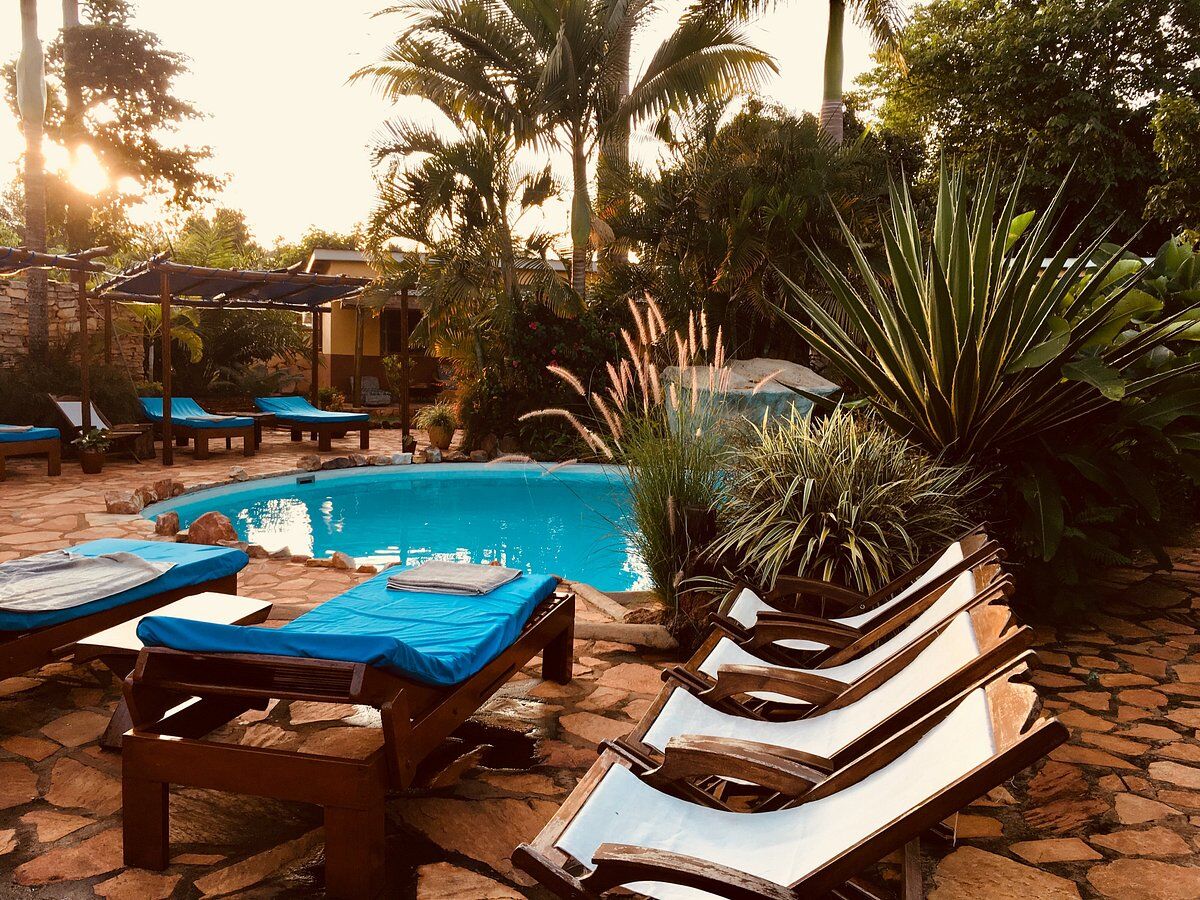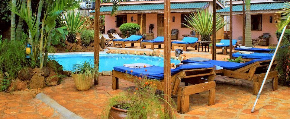 Gæsterne kan nyde en europæisk morgenmadsbuffet med frisk brød, frugt, oste, hjemmelavede marmelader, æg, friskbrygget ugandisk kaffe og meget mere. Måltider fra restauranten kan serveres i spiseområdet, ved poolen eller på værelset. Den nærliggende All Friends Restaurant er også let tilgængelig via en privat indgang for gæster.