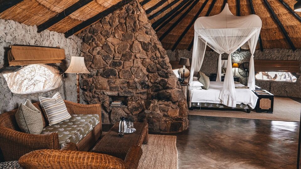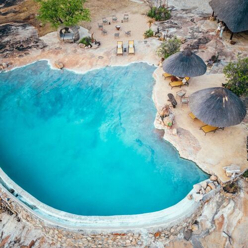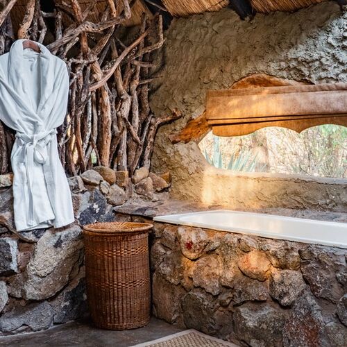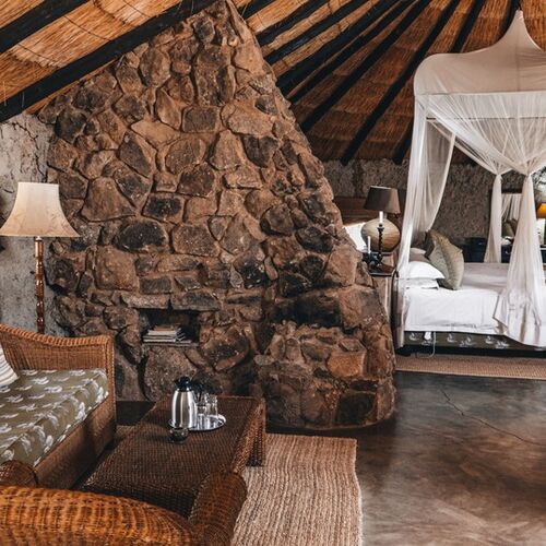 Udover de 9 værelser er der et udendørs spise-område, bibliotek, bar og safari spa.