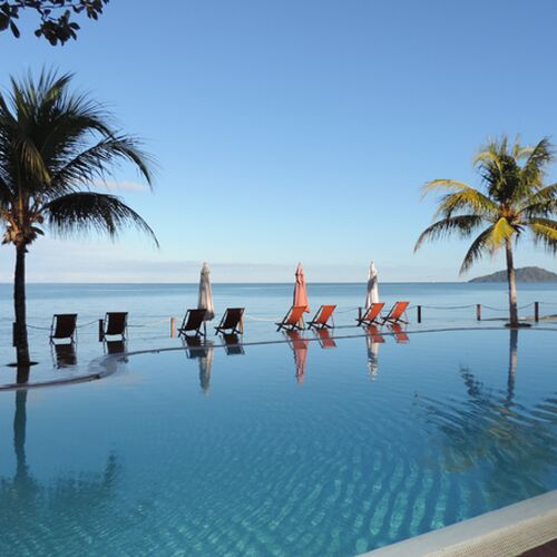 På hotellet finder du en dejlig pool, hvor du kan nyde en svalende dukkert med udsigt til havet.