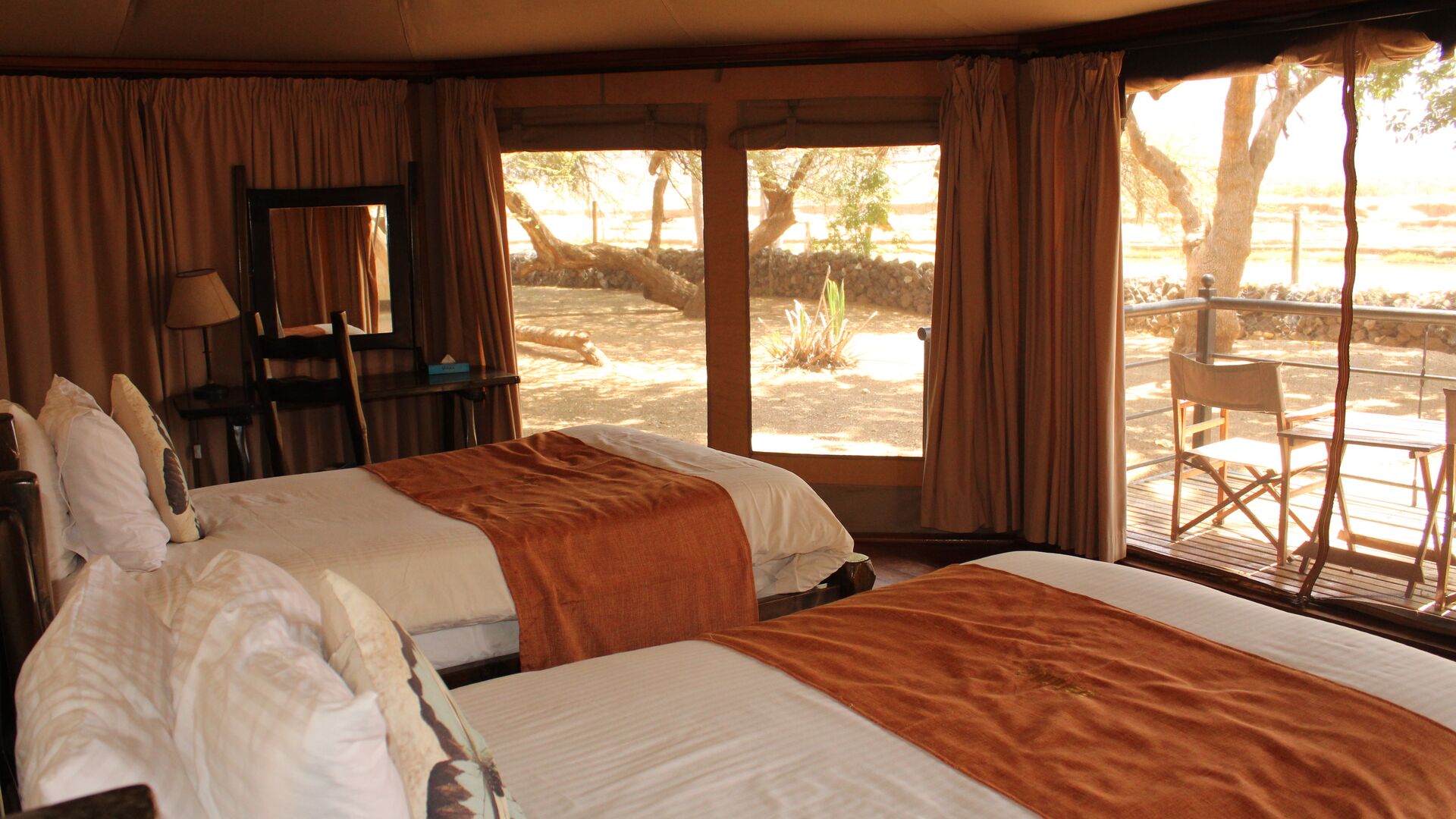 Campen har 30 luksustelte med udsigt til Ewaso Nyiro River. Den åbne sidderestaurant har plads til max. 100 gæster og ligger ligesom stedets swimmingpool med udsigt til floden. Loungen med plads til 60 siddende gæster ligger i hovedbygningen væk fra spiseområdet.