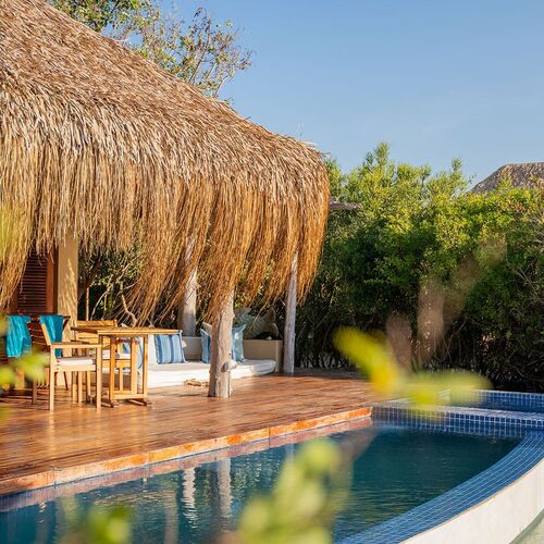 Azura Benguerra Island tilbyder et udvalg af airconditionerede villaer, der er omhyggeligt designet for at optimere udsigten over det turkise hav, give adgang til stranden og skabe en følelse af afsondrethed. Moderne faciliteter og luksuriøs indretning kombineres med en strand-chic, mozambikansk flair. Hver villa har en privat pool, Beach Sala (udendørs loungeområde), solbadningsdæk, komfortable udendørs sofaer og spisebord samt en privat butler-vært.
