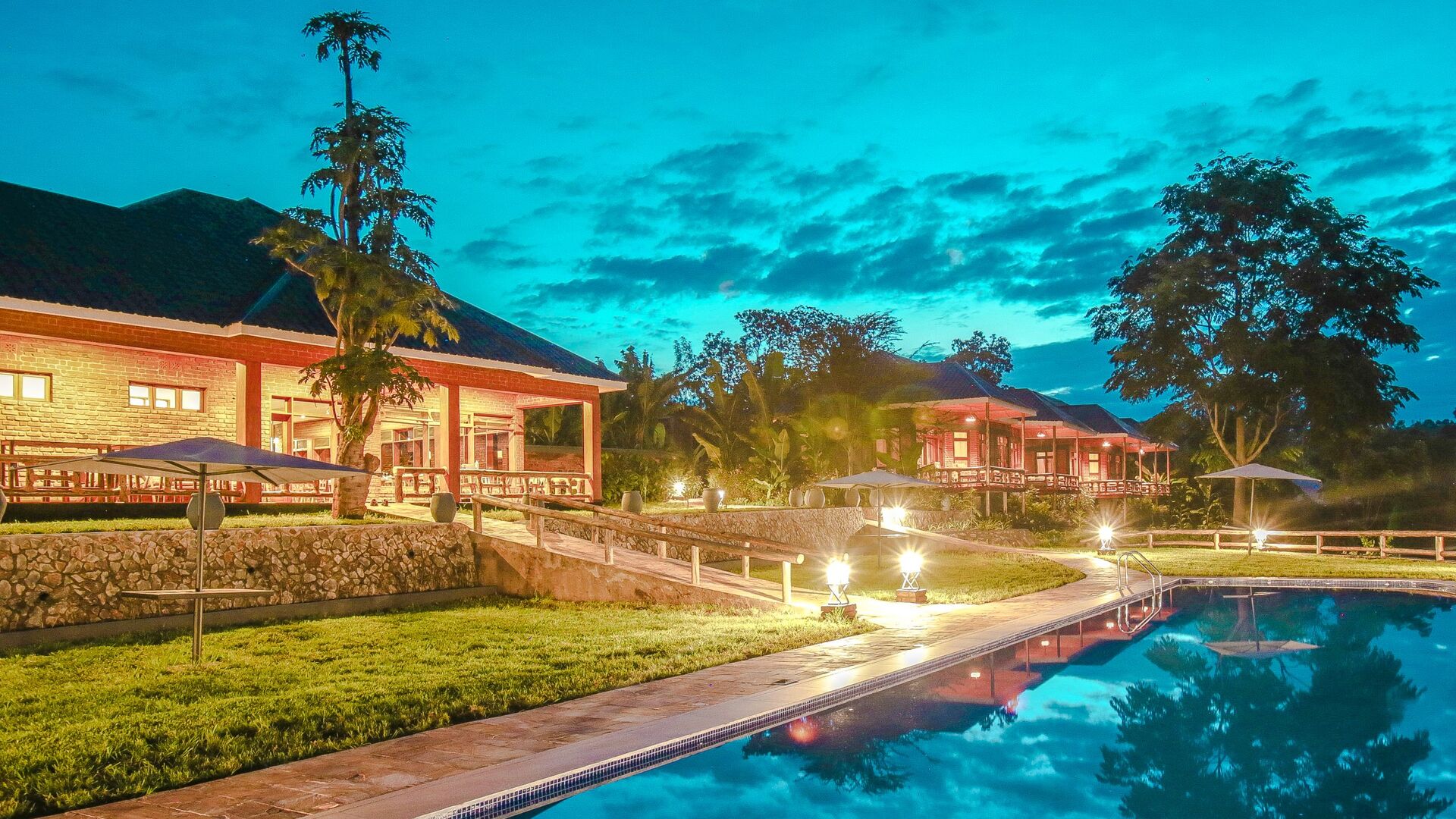 Hele lodgen er omgivet af frodige haver og ligger i en aktiv, fungerende kaffeplantage. Der er frugttræer, urte- og grønsagshaver. Fælles området består af receptionen, en stor lounge med bar og pejs og en spisestue. Verandaen har en fantastisk udsigt til udendørs spisning eller afslapning med en kop kaffe. Den store swimmingpool (velegnet til omgange) er omgivet af frodige grønne græsplæner, med liggestole og parasolborde. Coffee Garden Spa ligger i et roligt hjørne af ejendommen med mulighed for flere behandlinger og afslapning på højt niveau.