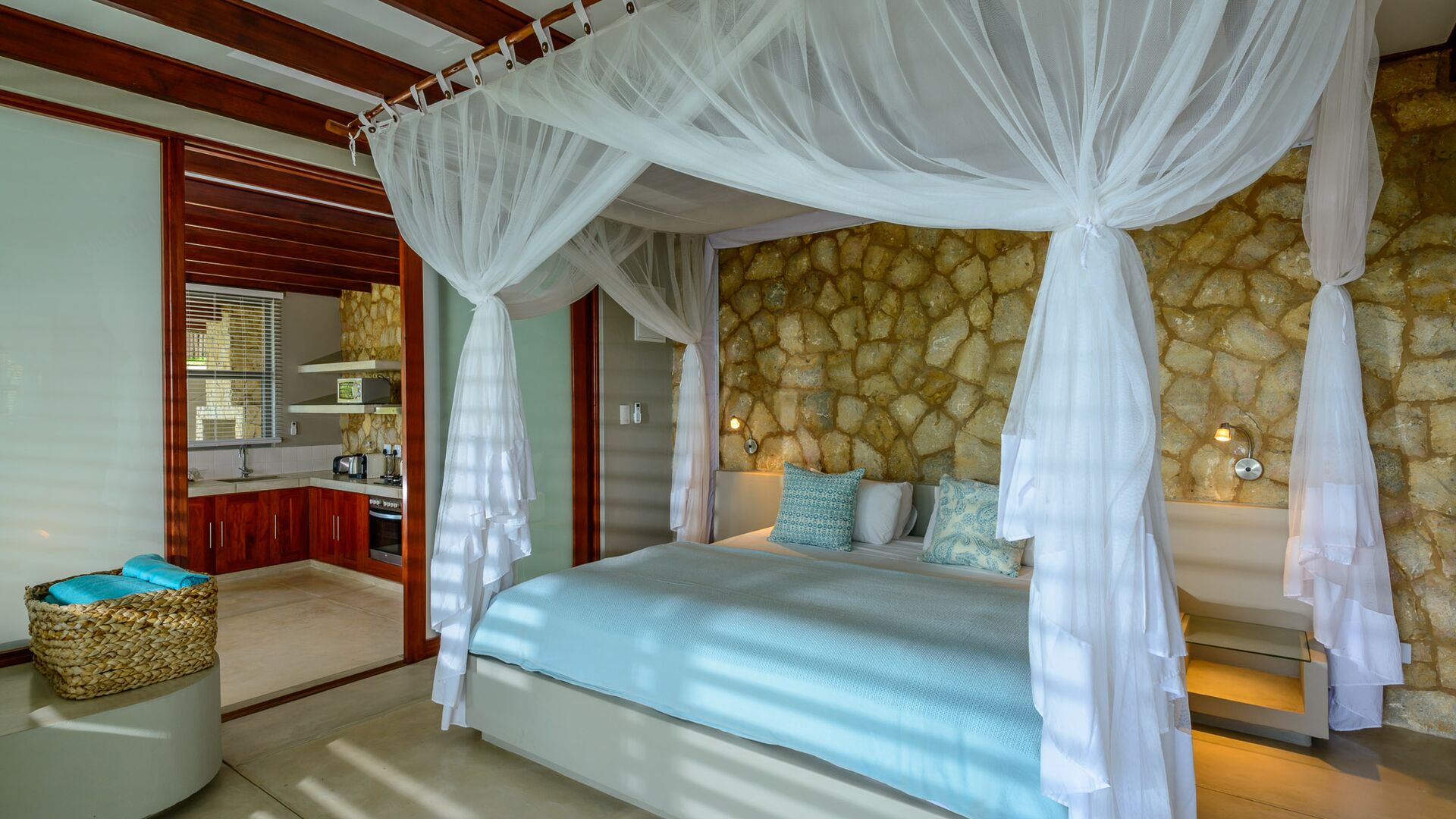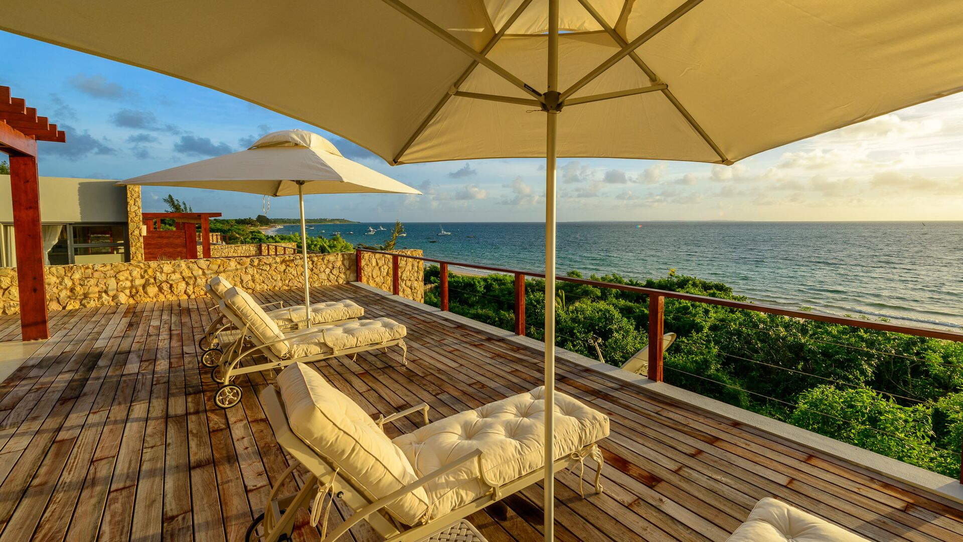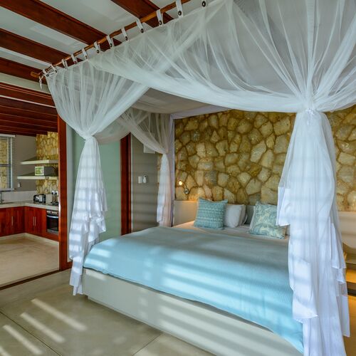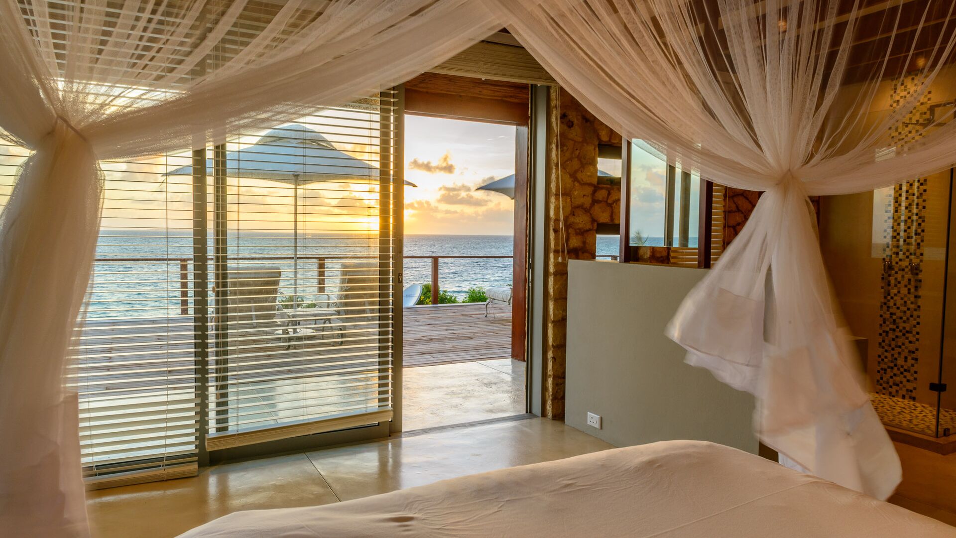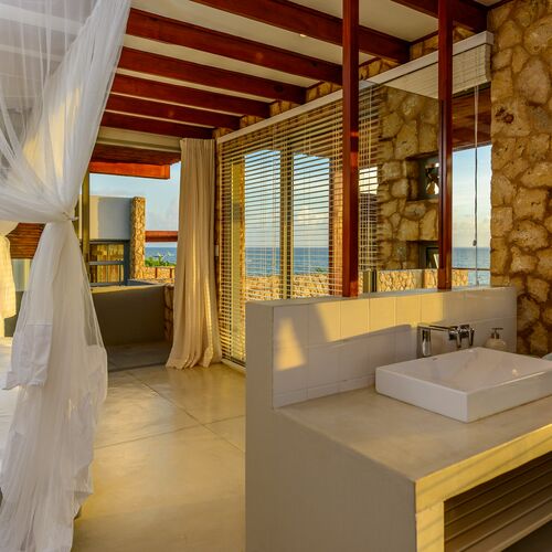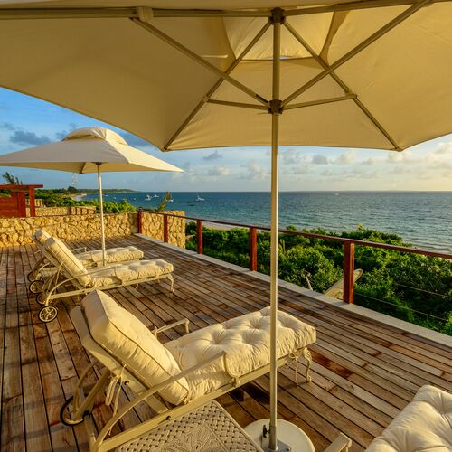 Er ideelt for en større familie med 2 Sea View værelser og en Luxury Beach Suite og dermed 3 dobbeltværelser, og et hus nærmest for sig selv.