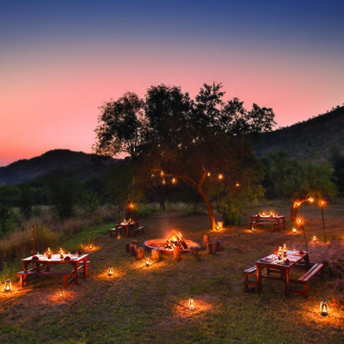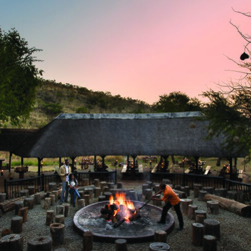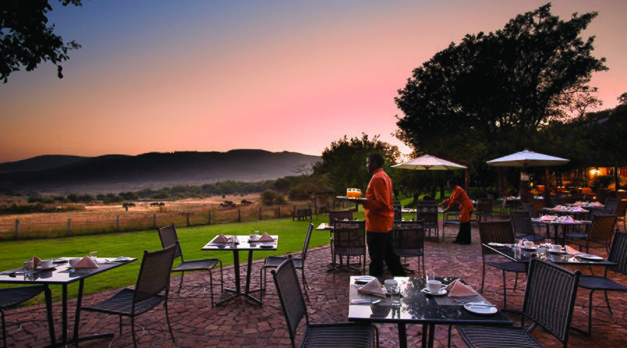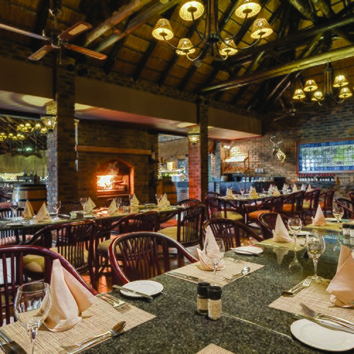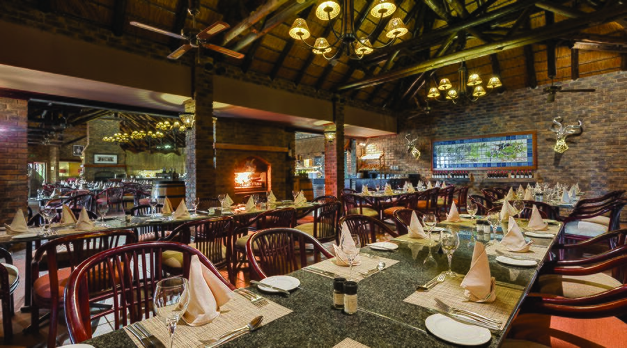 Restauranten på lodgen er lokaliseret centreret i resortet med direkte udsigt til vandhullet hvor elefanter tit kommer forbi til en eftermiddags drink. Der er mulighed for både buffet men også al la carte middag i moderne og traditionel stil. Det er muligt at sidde ude eller inde alt efter hvad man har lyst til.