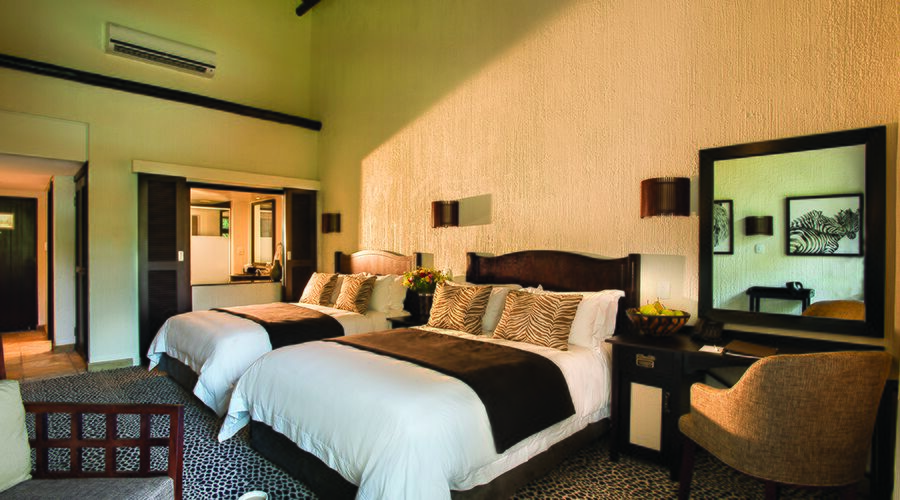 Lodgen har en vidunderlig udsigt over den smukke afrikanske natur fra de 100 værelser, der er spredt i en halvcirkel omkring et vandhul, hvor der lever flodheste og hvor der kommer mange vilde dyr for at drikke. Indkvarteringsmulighederne inkluderer standard queen room, standard twin room, standard king room, luksus king room, executive suite. De store dejlige værelser har aircondition, minibar, TV samt kaffe/te og elkedel. Der er fri internetadgang på Bakubung Bush Lodge.