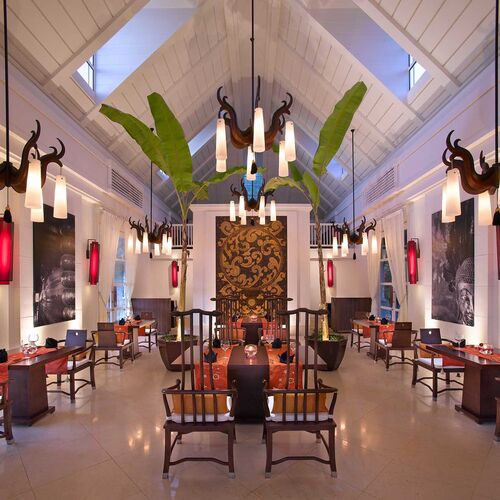 Hotellet har 3 barer, 3 restauranter og der er mulighed for at få serveret måltider i egen villa - eller blive forkælet med middag på stranden. Restauranterne har et stort udbud af internationale retter ligesom der er fokus på det thailandske køkken i Restaurant Saffron.