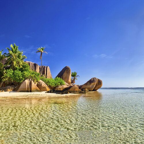 Svajende palmer, tropisk have og smuk strand byder dig velkommen i det ægte paradis på Seychellerne.