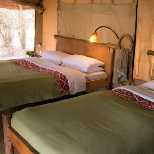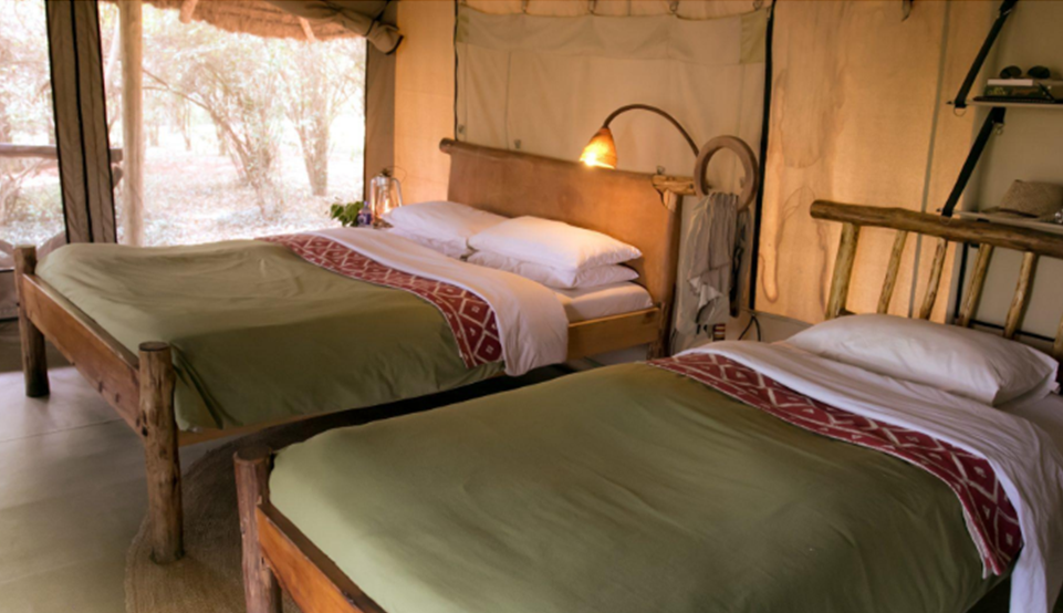 Teltene er indrettet med enten en king size double bed eller to twin beds. Fra teltene er der udgang til egen privat balkon, hvor I har direkte udsigt til floden og Masai Mara National Reserve. Hvert telt har eget badeværelse med toilet og to brusere, en indenfor og en open-air safari bruser udenfor.