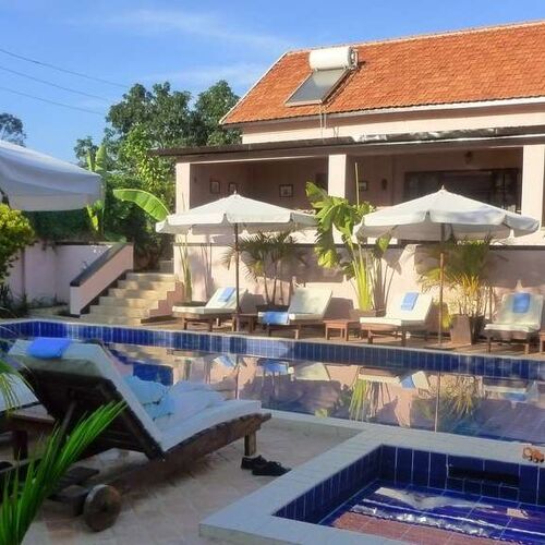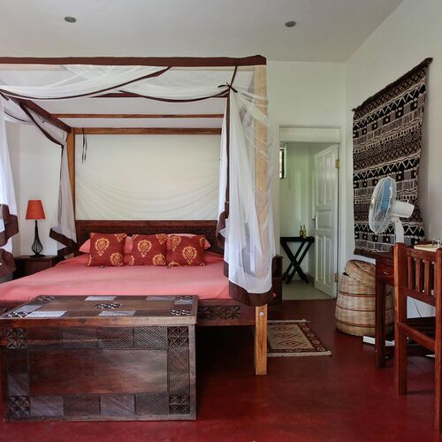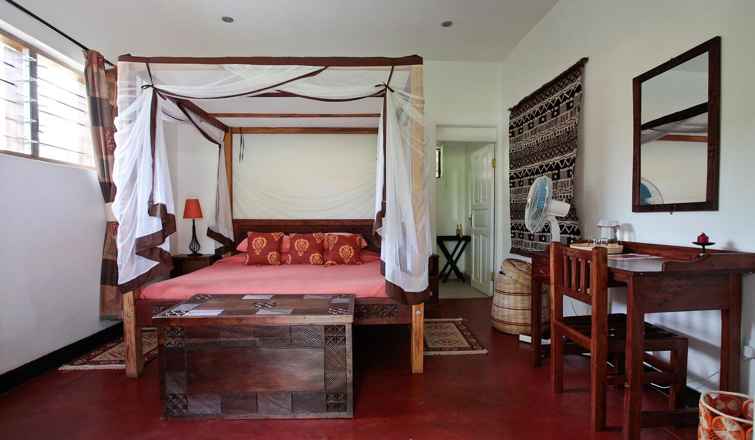 Alle værelser har naturligvis eget badeværelse, store senge med myggenet.
