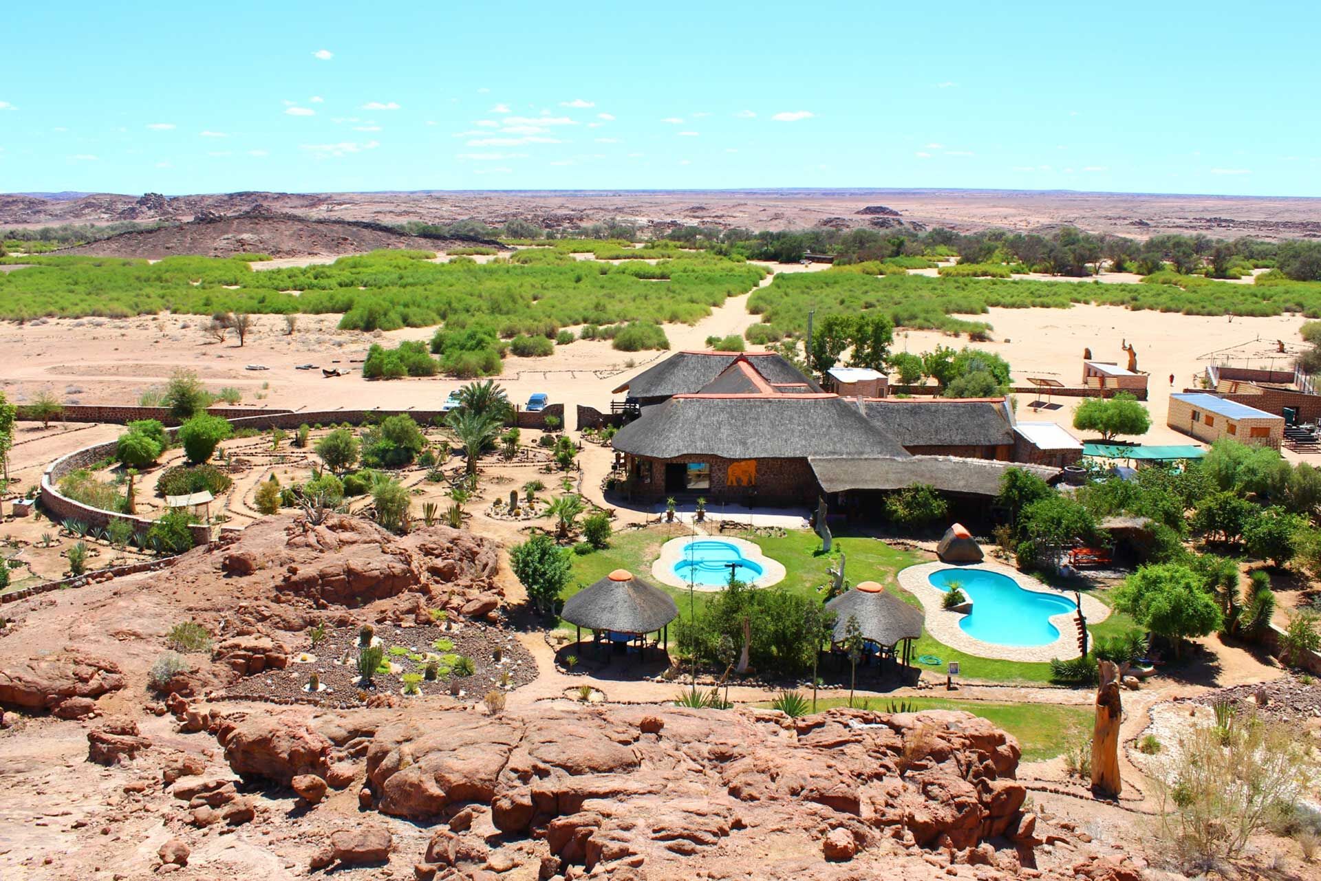 Brandberg White Lady har også et meget flot pool område, hvor der hele vejen rundt om er klipper, som giver et meget specielt, men flot udseende.