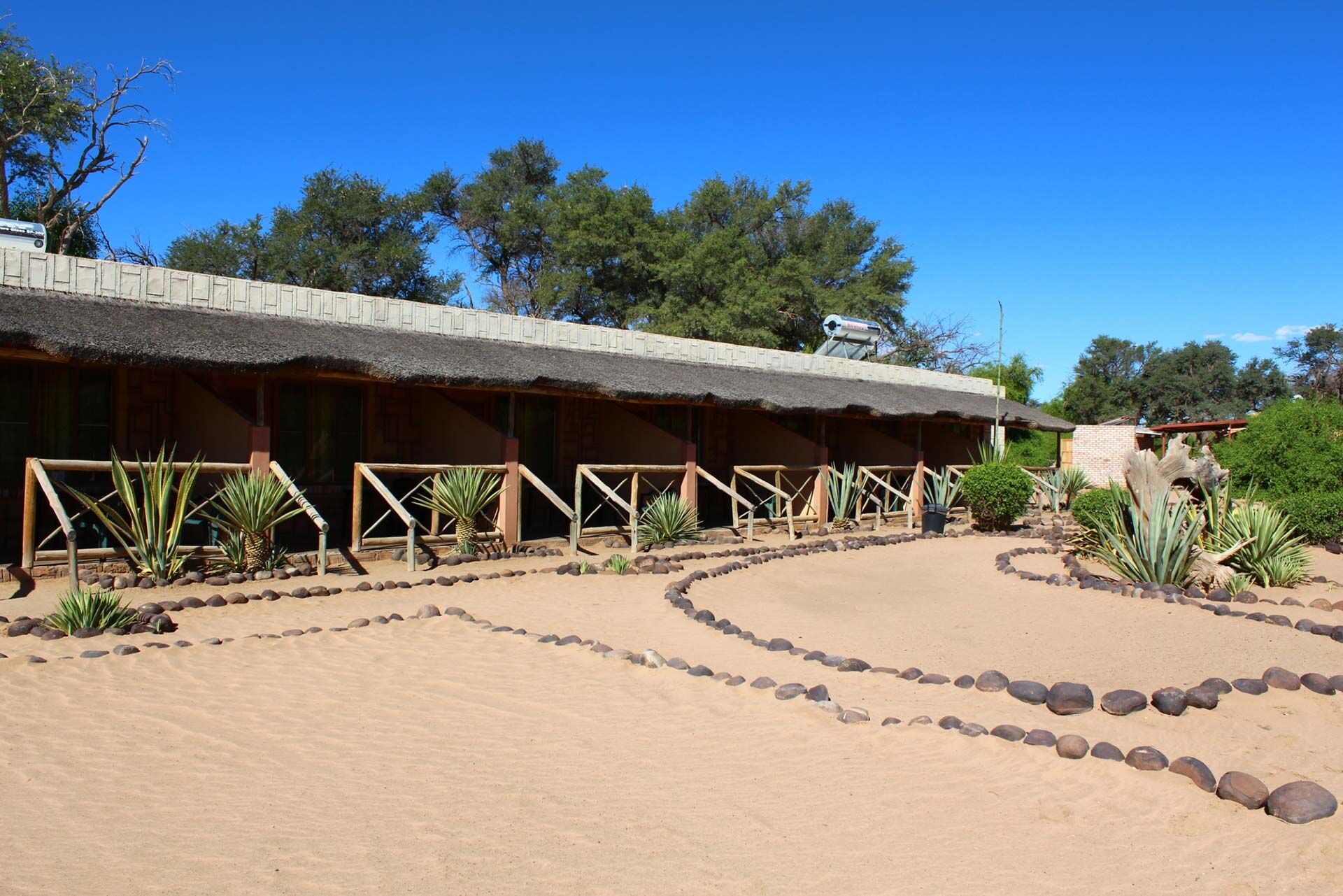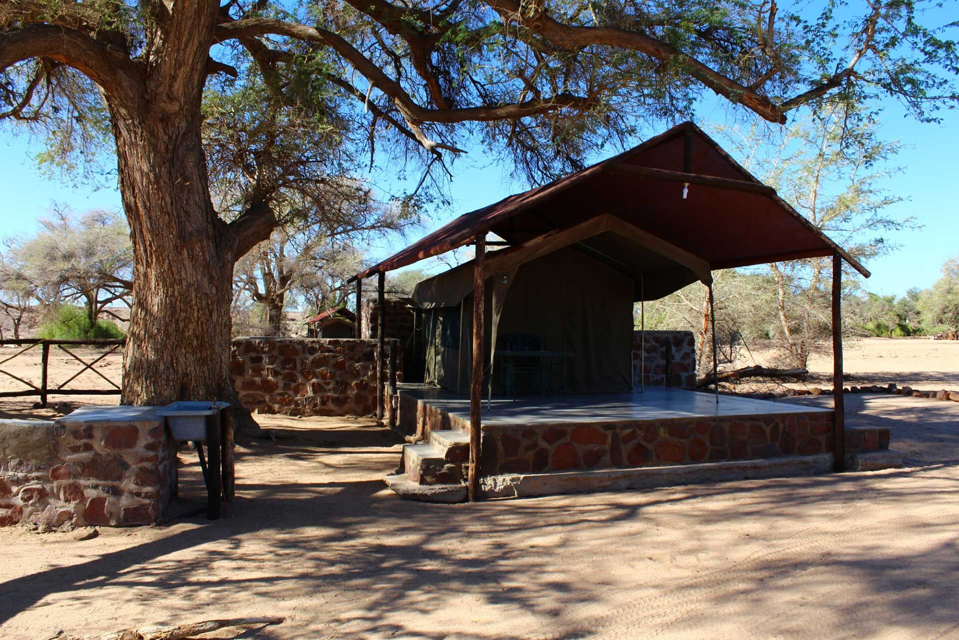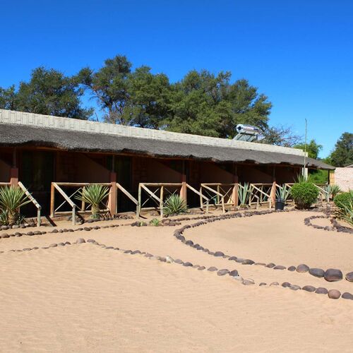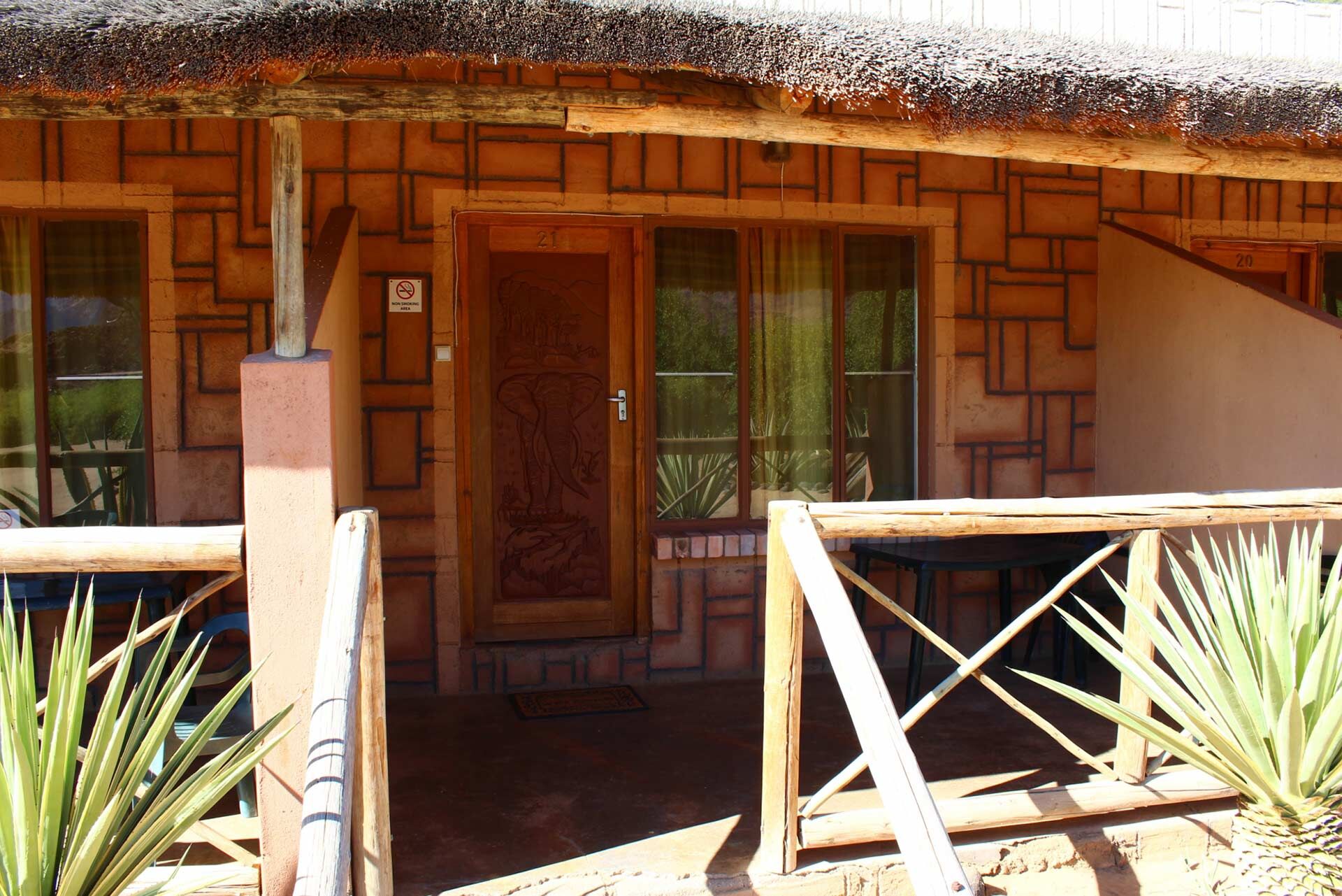 Værelserne har alle en mindre terrasse med udsigt ud til Brandberg. Værelserne er også udstyret med eget bad og toilet samt elektricitet.