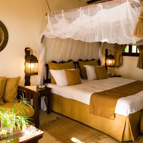 Beliggende i stueetagen af bungalows med terrasse, smagfuldt indrettet i elfenbenstone, med bomuldskast, teaktræsafslutninger og Zanzibar-udskæringer. De er fuldt klimatiserede med eget badeværelse, køleskab, personlig elektronisk sikkerhedsboks, hårtørrer på badeværelset og en fuld tredje seng, der fungerer som en sofa.