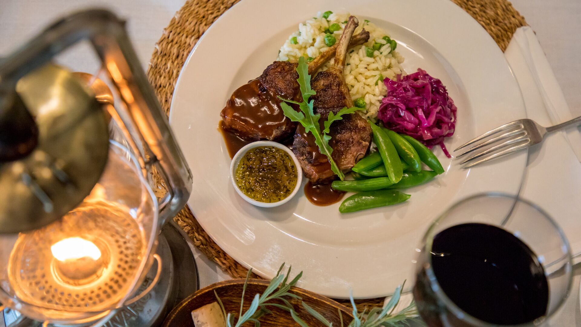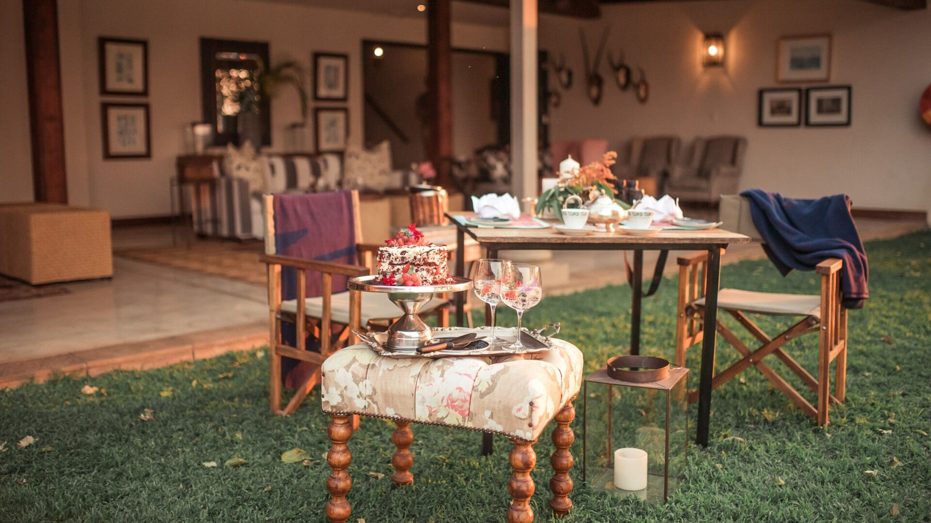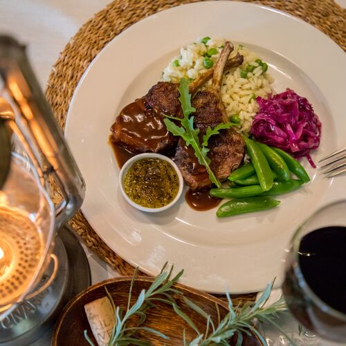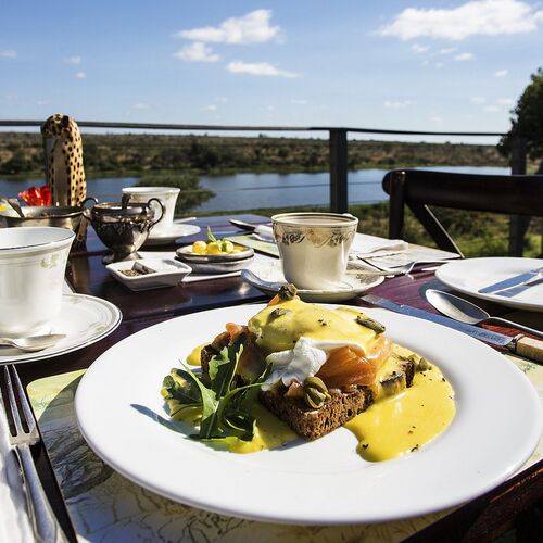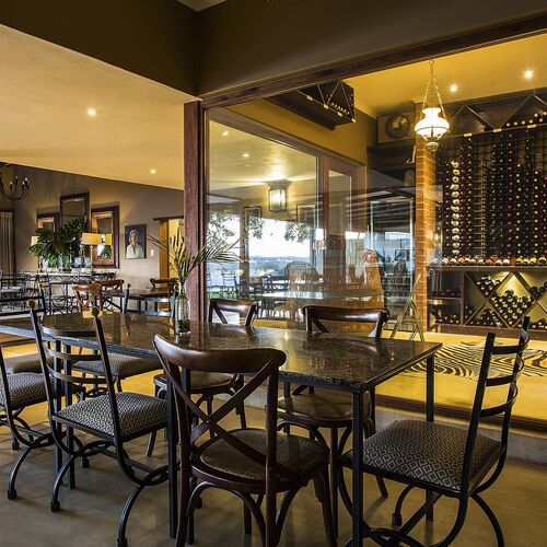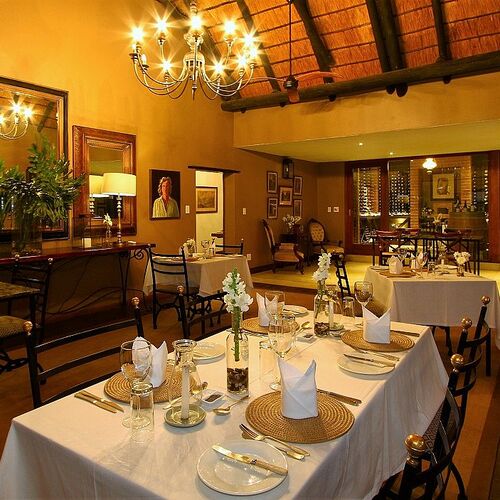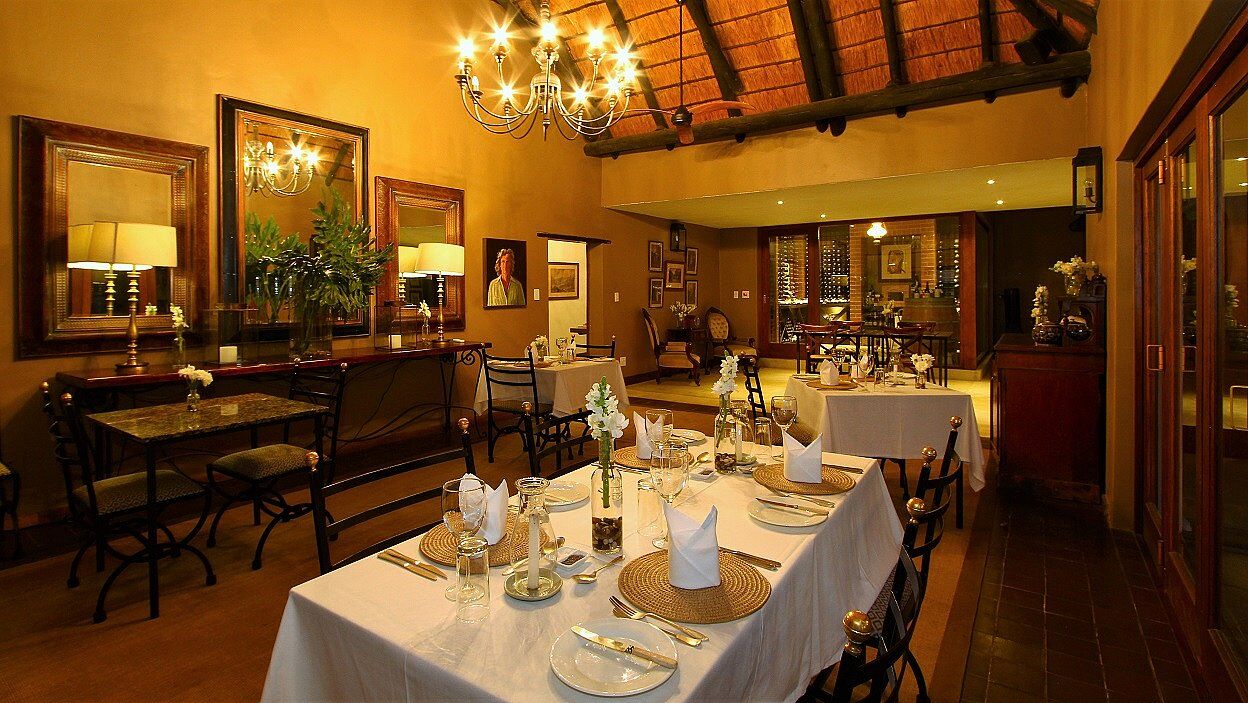 Måltider serveres enten på verandaen, i den elskværdige spisestue eller under stjernerne. Atmosfæren er en afslappet elegance. Sammen med mad fra det lækre køkken serveres de fineste sydafrikanske vine.