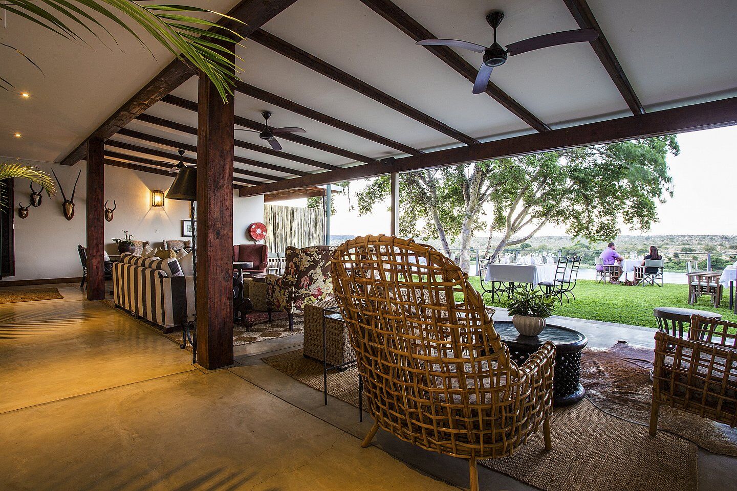 Her kan man læne sig tilbage og spotte the Big 5 fra eget luksusværelse, spille en runde golf på den eksklusive Leopard Creek Country Club, nyde en safari i Kruger National Park med egen privat guide eller blot tage en dukkert i poolen efter en massage i vores bush spa. De generøse udendørsarealer sikrer, at der er den perfekte mulighed for at slappe af, mens den betagende udsigt beundres. The Big 5 er hyppige besøgende sammen med flodhest, krokodille og mange antilopearter.