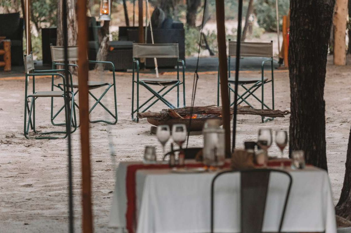 Samling og hygge foregår ofte omkring bålstedet ovenpå en god safaridag. Ved bålet, kan man sidde og nyde et glas vin alt imens middagen tilberedes og serveres.