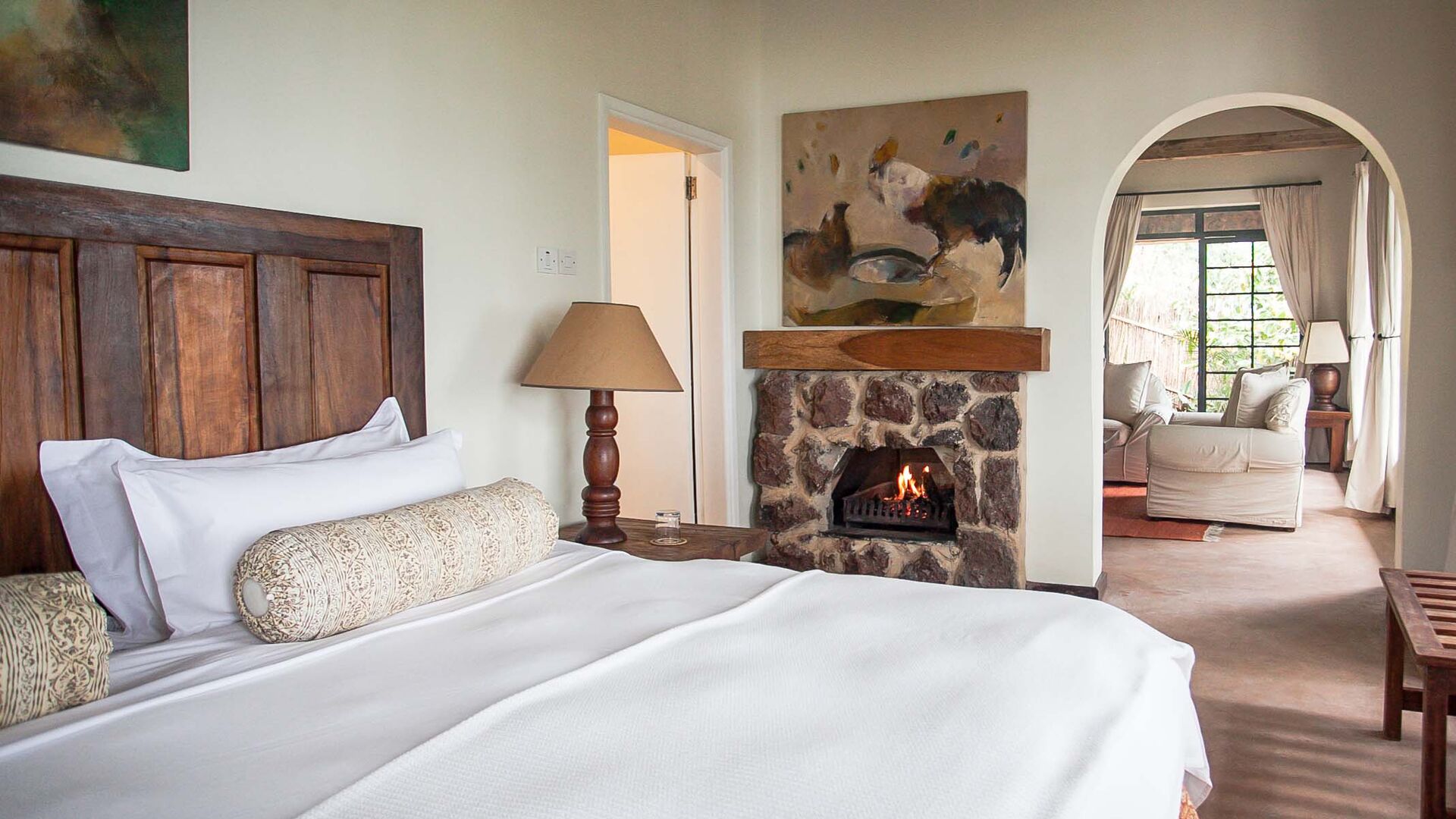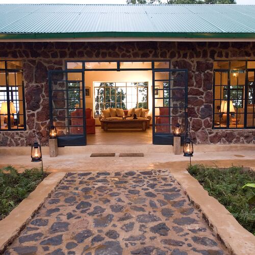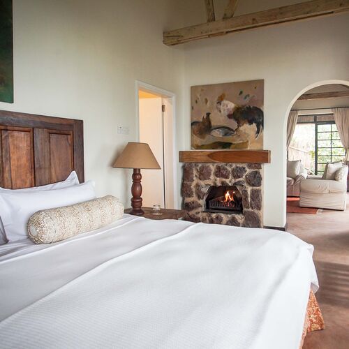 Lodgen består af otte rummelige hytter bygget af vulkansten. Herfra kan I nyde den betagende udsigt, som strækker sig hele vejen til Virunga Mountains, som er en kæde af vulkaner langs den nordligste grænse til Rwanda. Hver hytte er indrettet med soveværelse, en-suite badeværelse og en separat lounge. Fra hytterne er der udgang til egen veranda, hvorfra I kan beundre skoven.