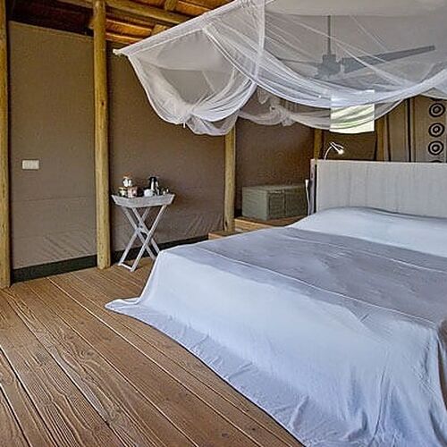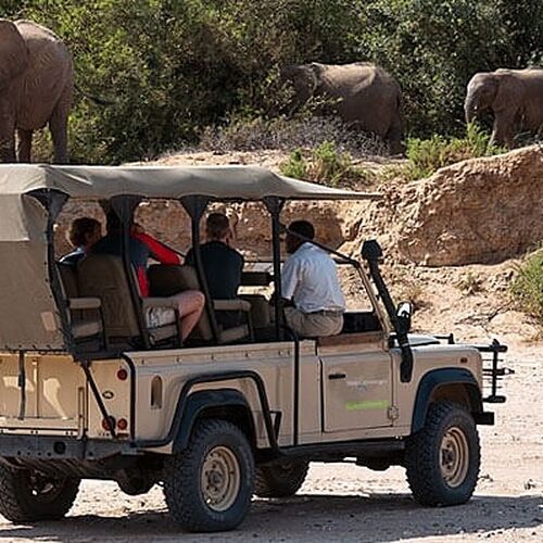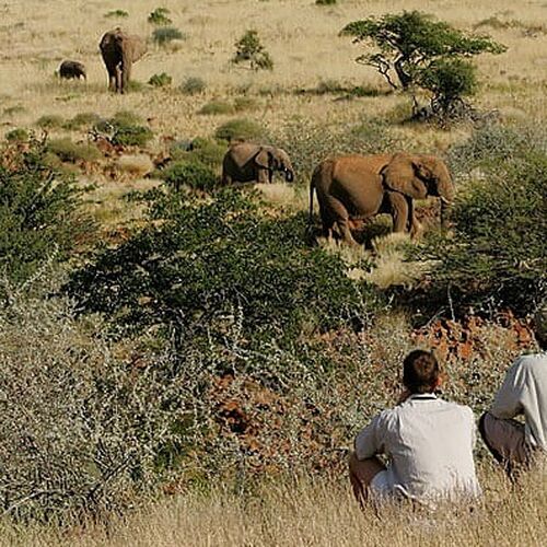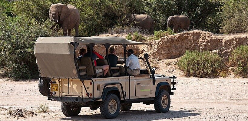 Et åbent lejrbål og udendørs 'boma' kan nydes på de rolige aftener. De helt store dyr er ikke at finde her året rundt, da den naturlige cyklus af nedbør dikterer den sæsonmæssige bevægelse af dyreliv langs Huab-floden, som kan udforskes fra direkte lejren.