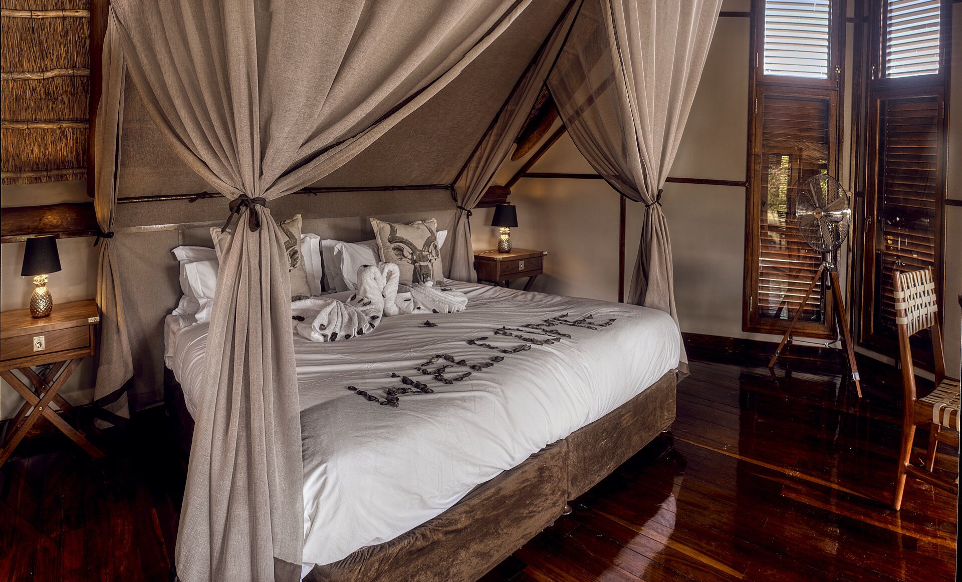 Lodgen tilbyder fremragende service på de faciliteter, der sikrer et behageligt og afslappende ophold. Med en fantastisk beliggenhed med udsigt over vandhullet fra de private udsigtsterrasser har hver af de 8 meget rummelige suiter et soveværelse, separat opholdsstue, en-suite badeværelse og udendørs bruser.