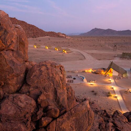 Desert Quiver Camp tilbyder en unik kombination af moderne selvforplejende indkvartering med komfort og elegance. Beliggende blot 5 km fra indgangen til Sossusvlei, indfanger dens inspirerende natur med granitklipper, fantastiske udsigter og vildt din opmærksomhed.