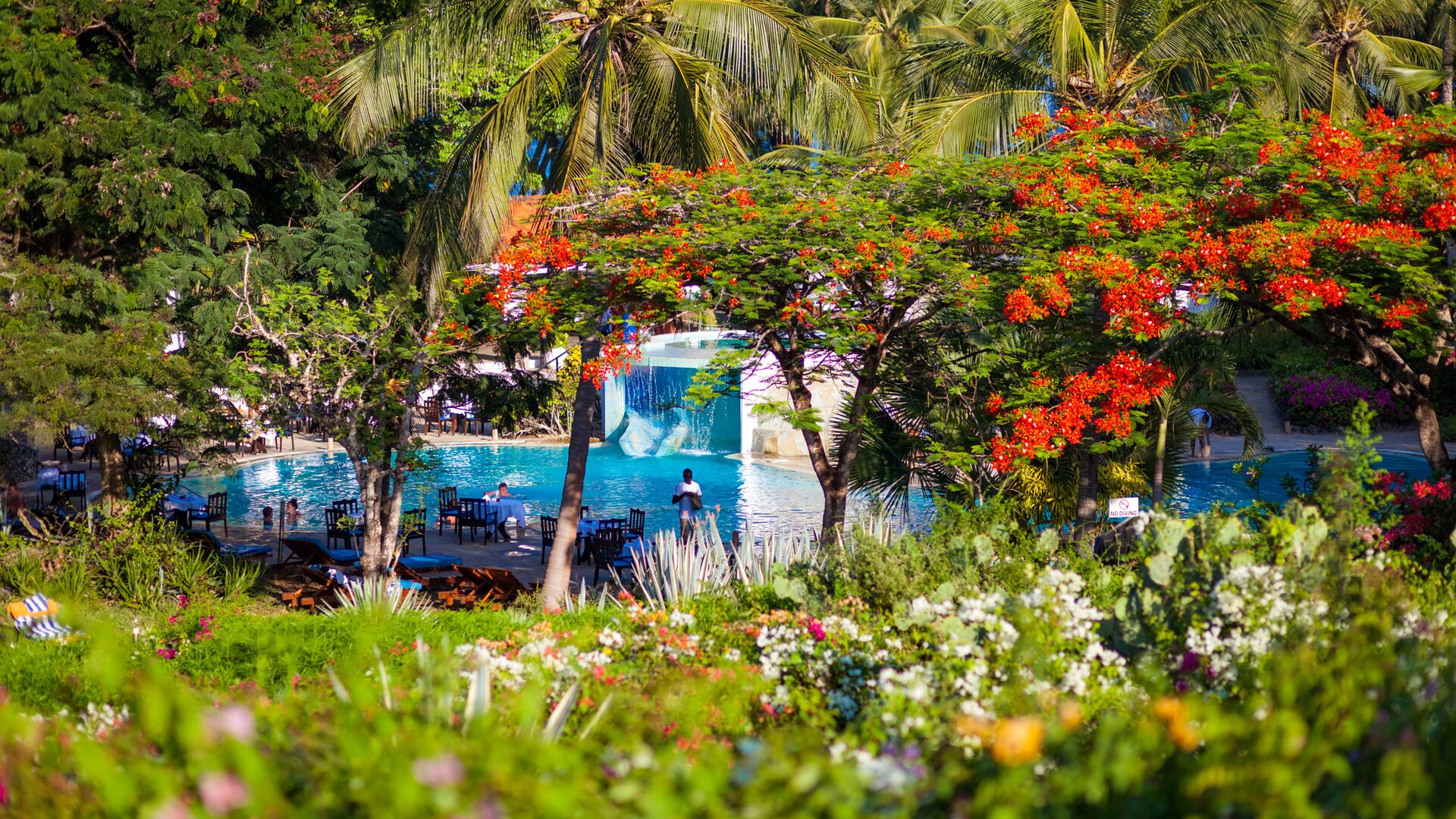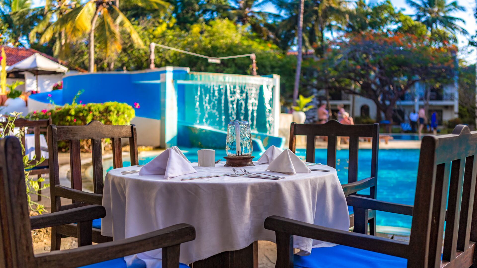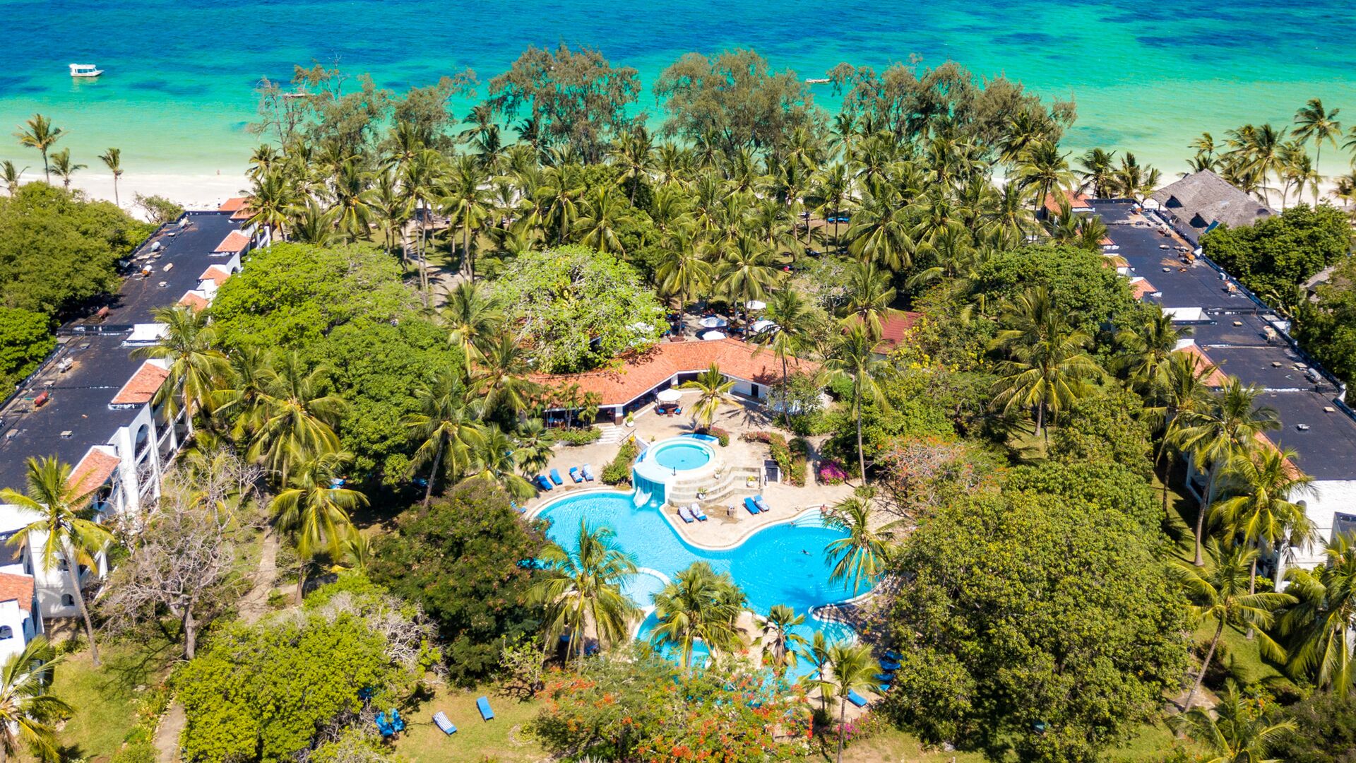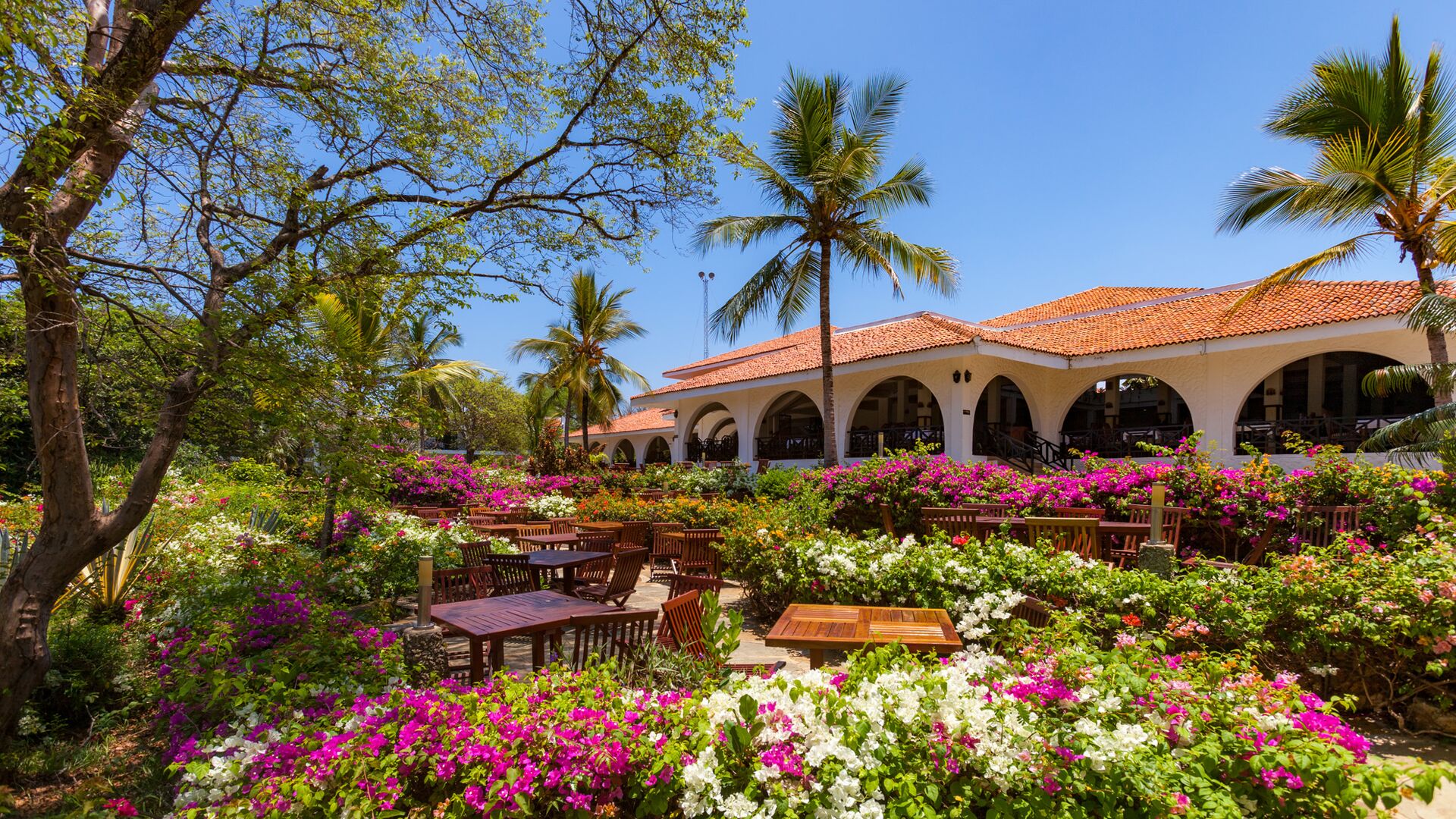 Nyd omgivelserne på altanen med en smuk sideudsigt over Det Indiske Ocean, tættere på poolen og havet. Alle møbler er lavet af lokalt træ i lokal afrikansk stil. De har myggenet, split-level aircondition, pengeskab, bruser, toilet, bidet samt telefon, minikøleskab, som genopfyldes dagligt af all inclusive madplanen, tefaciliteter og satellit-tv.