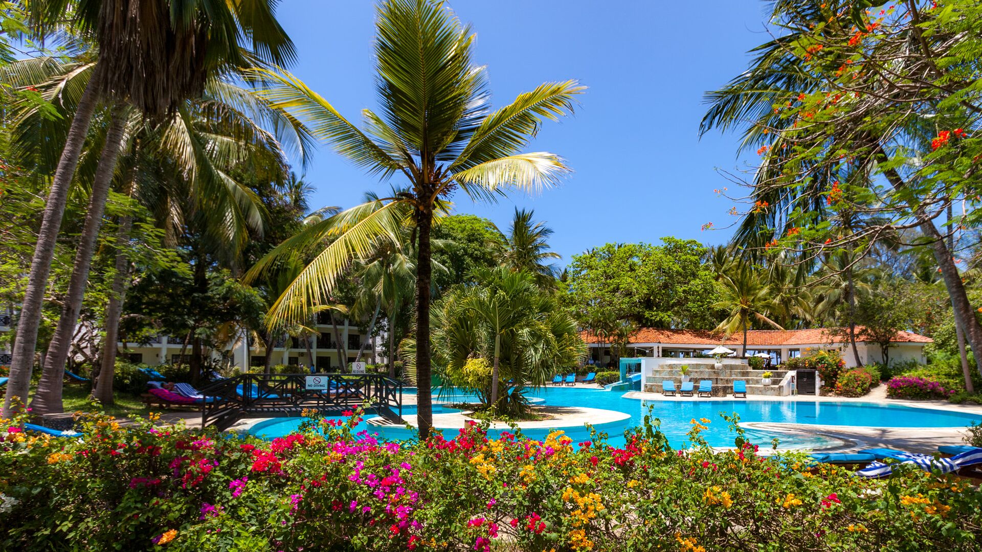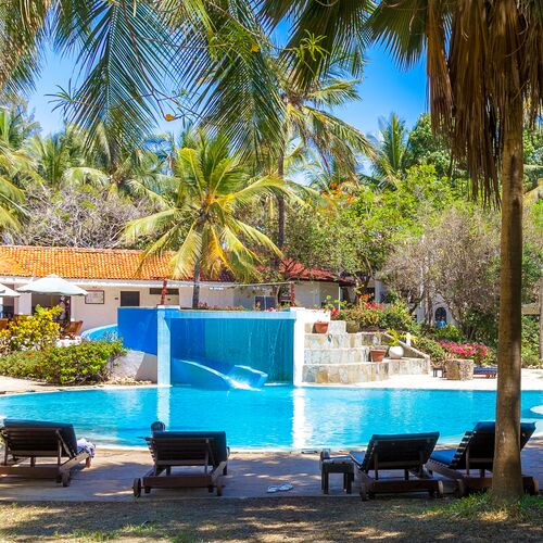 Beliggende på de smukkeste uspolerede krystalhvide sandstrande på Kenyas sydkyst, ligger dette resort i skyggen af kokospalmer samt et utal af eksotiske træer og blomster. Diani Beach resort er alt inklusive og tilbyder det ultimative tropiske paradis. Dyreliv bugner i området, og forskellige varianter af aber kan ses hoppe rundt i nærheden.