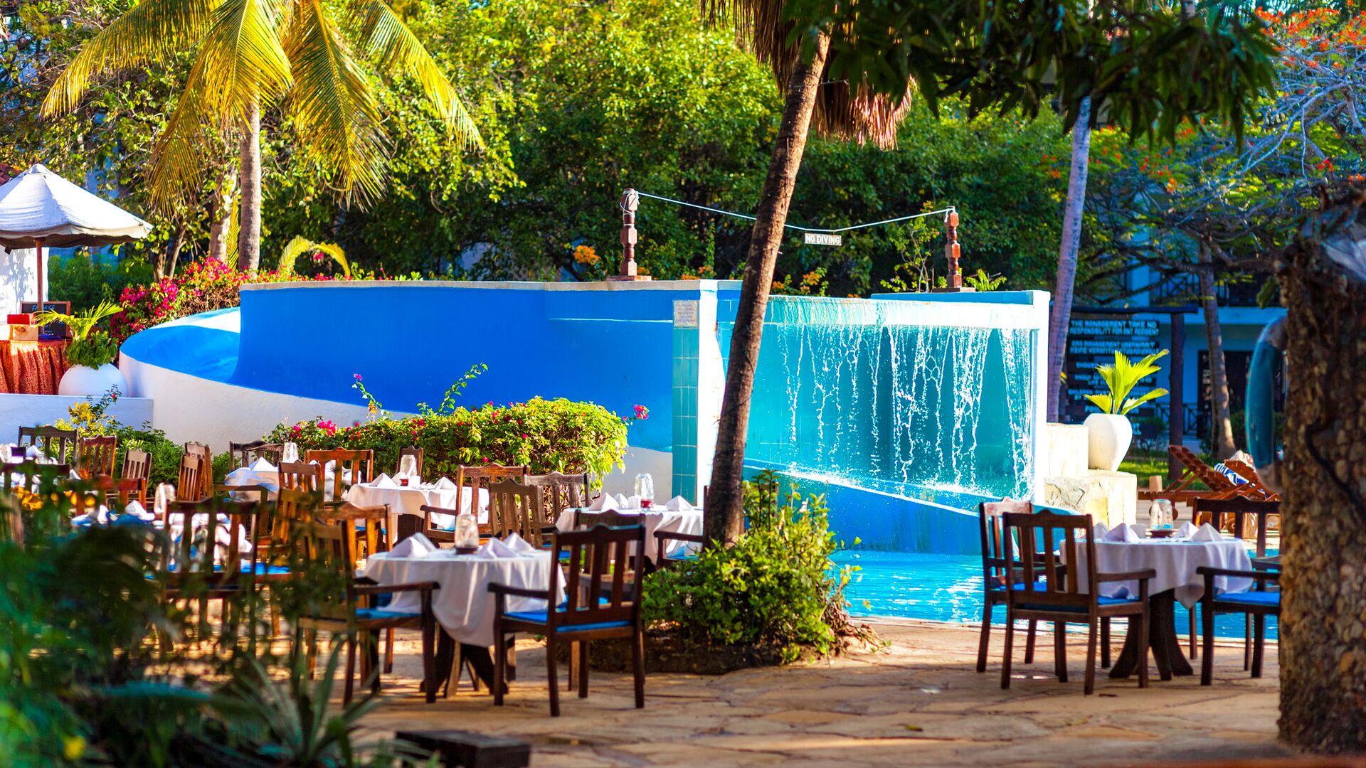 Diani Sea Resorts cateringteam har en blanding af spændende temaaftener i forbindelse med All-Inclusive-servicen. Disse omfatter italiensk, græsk, mexicansk, autentisk swahili, traditionel afrikansk og en fristende grill for blot at nævne nogle få.