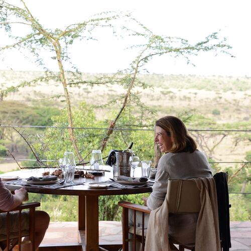 At spise i den afrikanske bush er en oplevelse, der vækker alle 5 sanser. Det er en fredfyldt, spændende, tilfredsstillende og mystisk oplevelse. Lejrens restaurant er til fælles brug, og derfor er både den og loungen et område hvor mobiler skal holdes på lydløs og helst slet ikke medbringes.