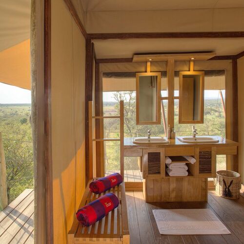 Eagle View Safari Camp består af 9 luksuriøse telte i to kategorier; "dobbeltværelserne" til to personer og familieteltene til 4 personer. Hvert telt byder på king-size dobbeltsenge eller to enkeltsenge, et badeværelse med bio-flush toiletter og to brusere, en indendørs og en udendørs safaribruser, Wifi på værelset, privat forhøjet udsigtsterrasse med enestående udsigt over Naboisho Conservancy. Eagle View er designet til at blende ind i naturen i området.