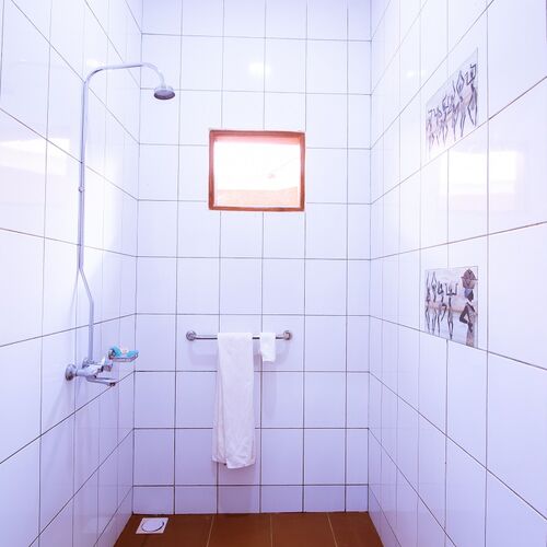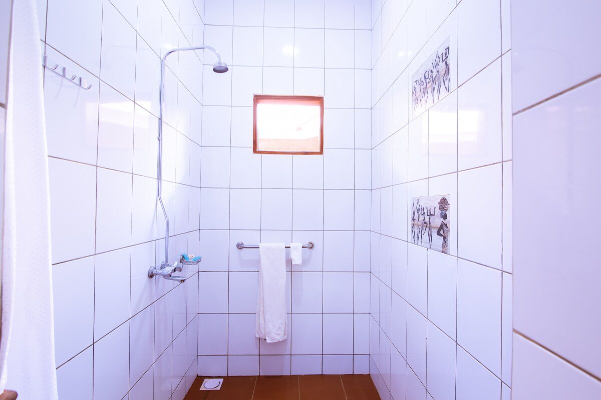 Badeværelserne er udstyret med rummelige brusere med varmt vand efter behov.