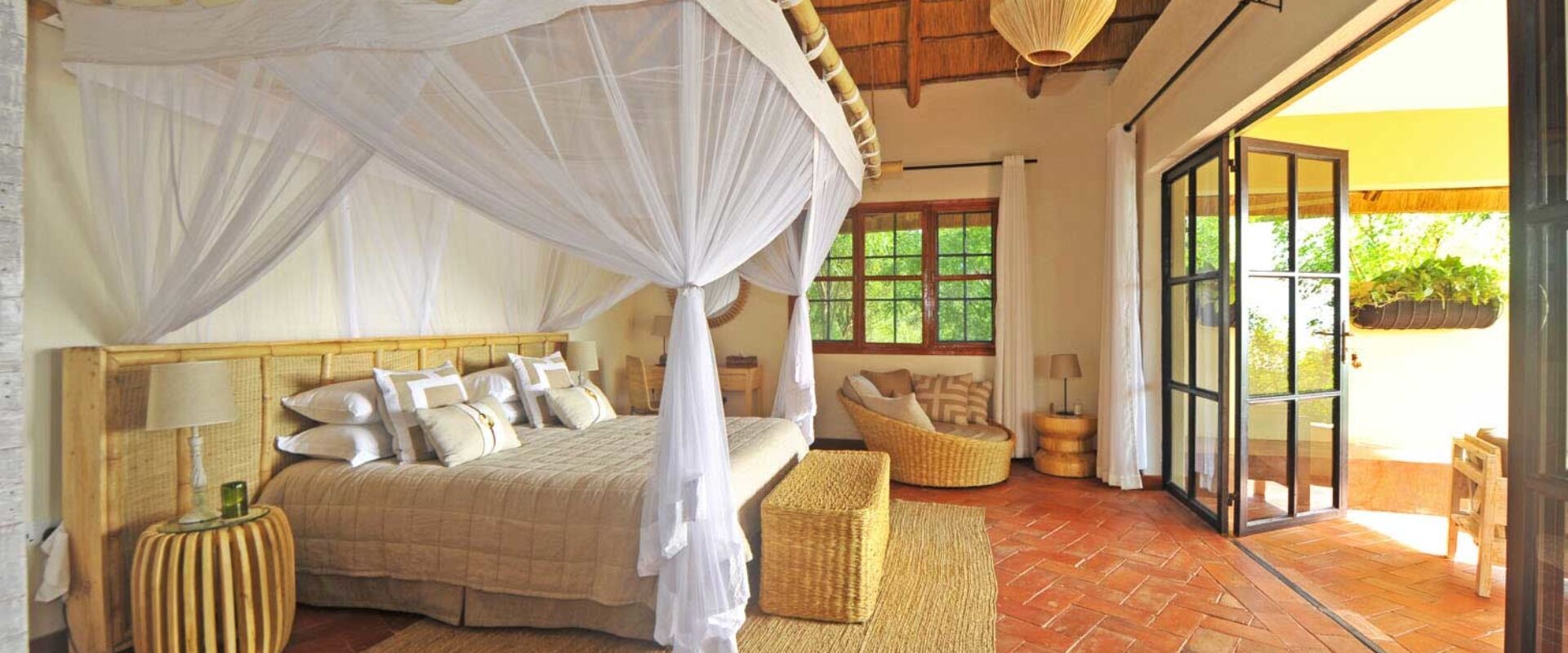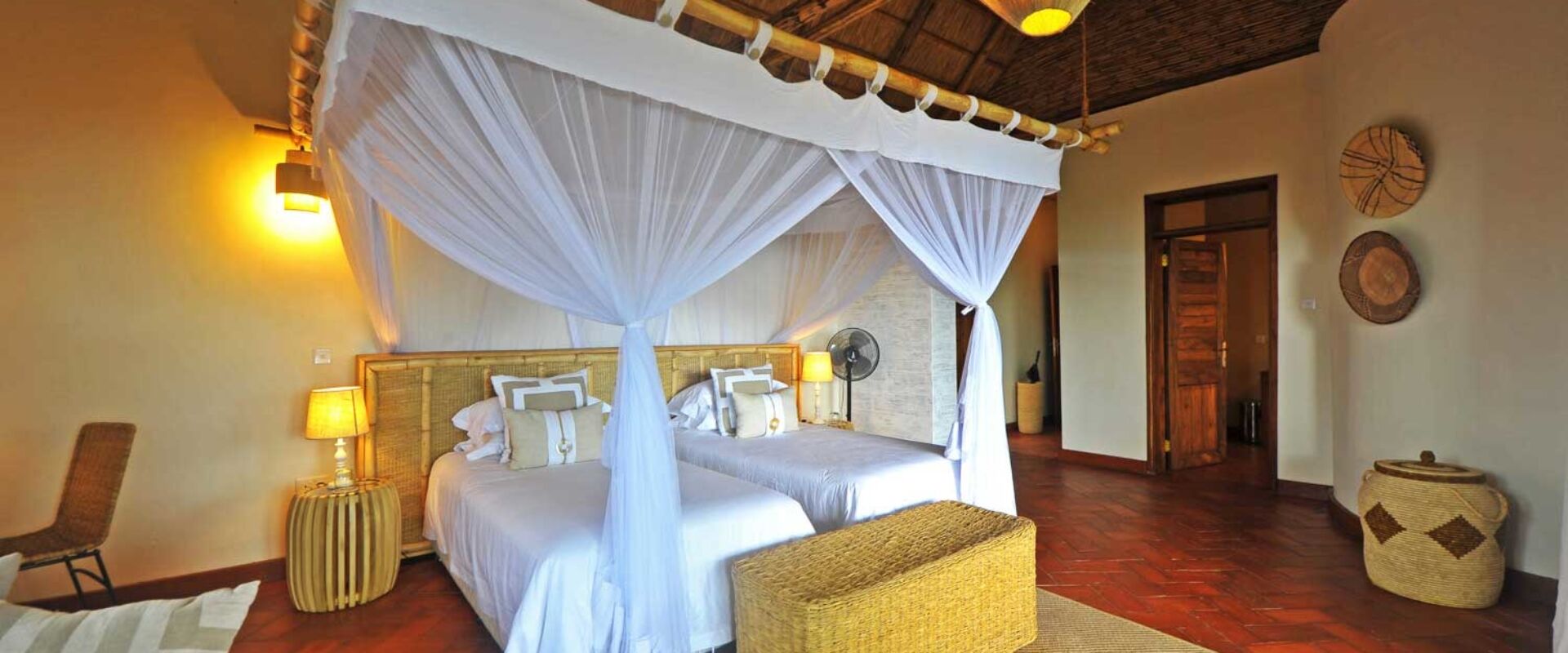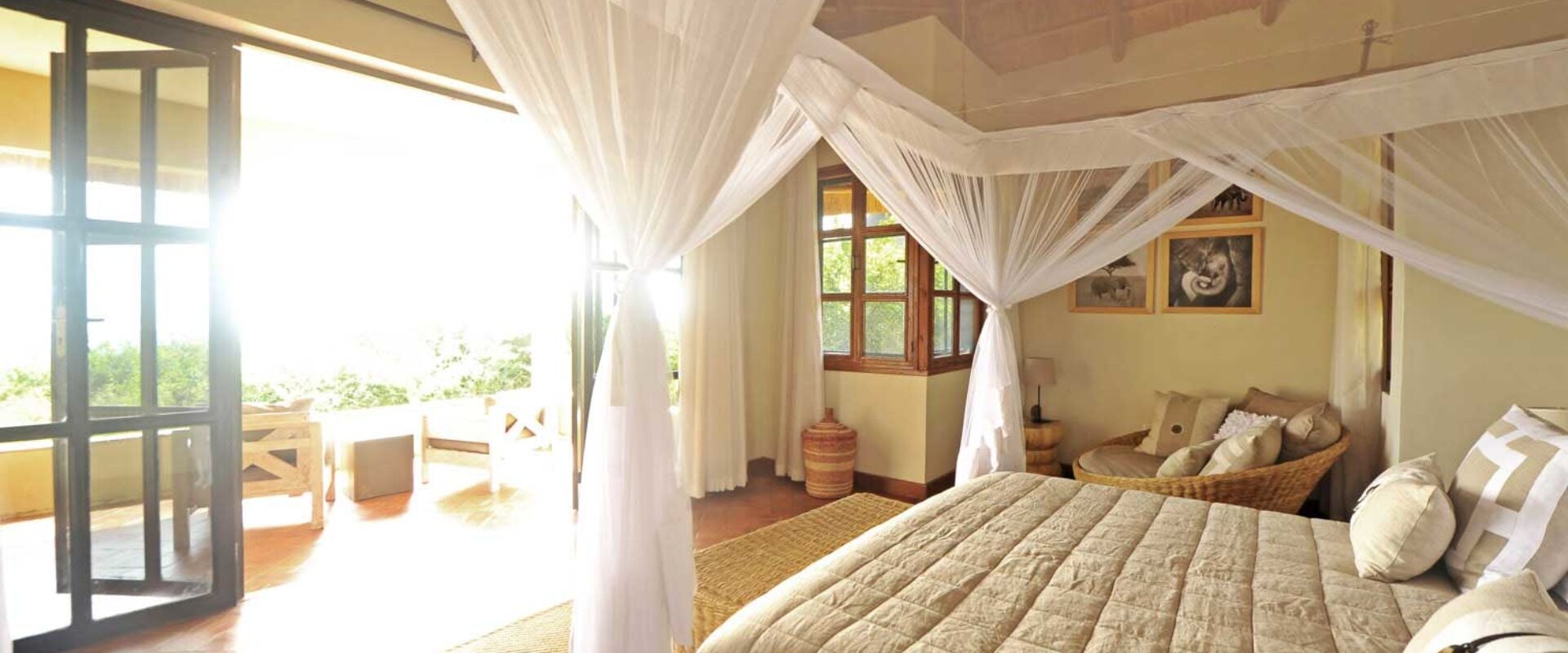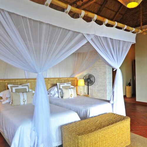 - Hytter: Lodgen har seks rummelige dobbelt- og tvillingehytter samt to familiehytter, som hver har to soveværelser med eget bad. Alle hytter er elegant indrettede og designet til at give maksimal komfort. Hytterne har store glaspartier, der lukker lyset ind og tilbyder uforstyrrede udsigter over savannen.