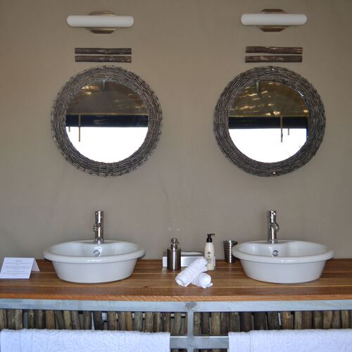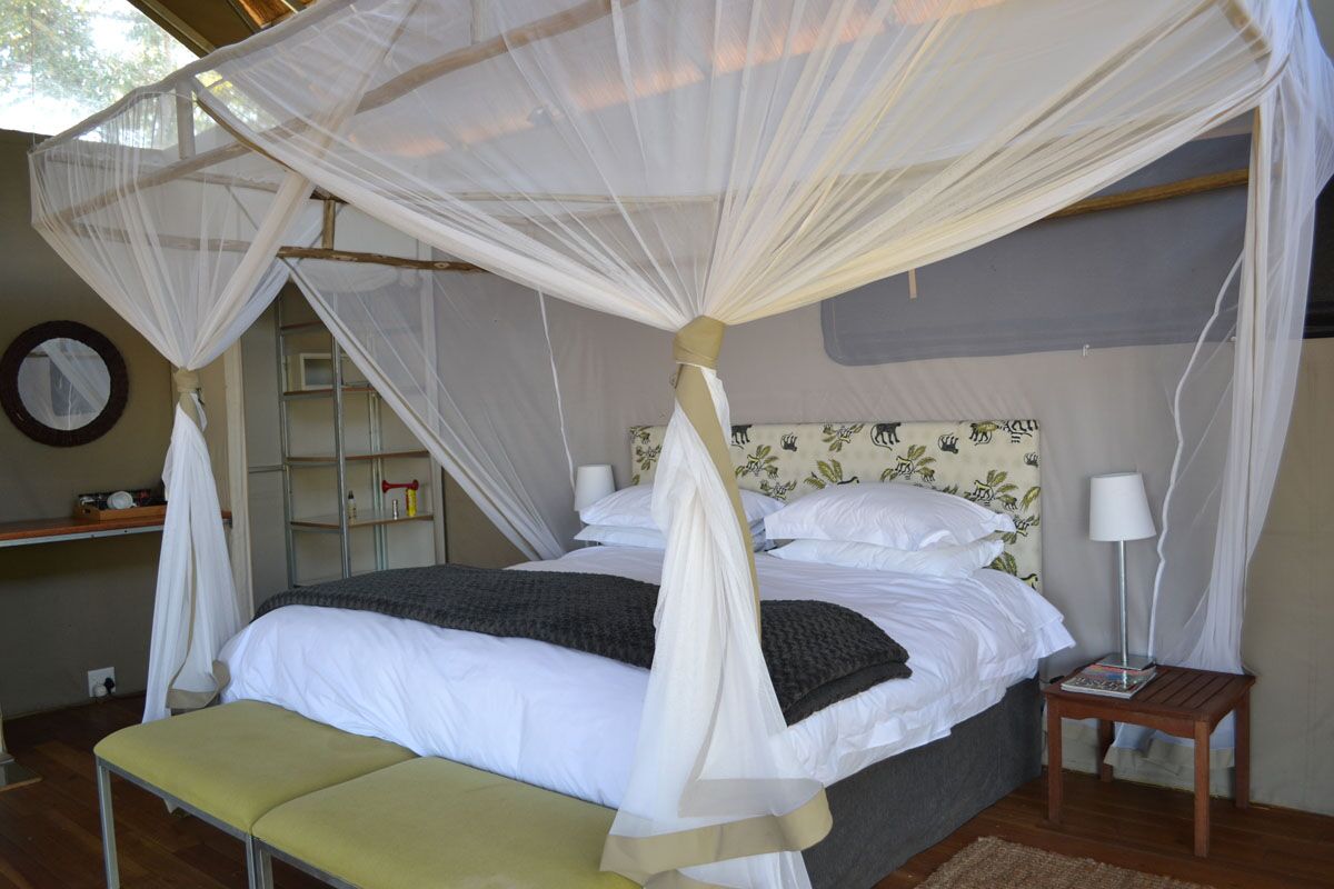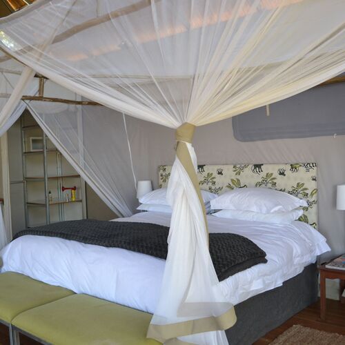Elephant’s Eye består af 8 meget store og rummelige telthytter, bygget på stolper, og alle med udsigt til vandhullet. Alle telthytter er indrettet lyst og moderne, alle med dobbeltseng/to enkeltsenge omgivet af myggenet, veludstyret badeværelse, udendørs bruser, fin lille ovn, som benyttes i den kølige årstid, te/kaffe faciliteter og terrasse/balkon, hvorfra man kan sidde og nyde naturen og dyrelivet.