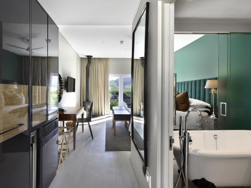 Franschhoek Boutique Hotel byder dig velkommen med 12 individuelt designede værelser, der hver har sin egen unikke karakter. Uanset om du foretrækker en dristig og farverig indretning eller en mere afdæmpet og minimalistisk stil, er din komfort altid i fokus. Værelserne er udstyret med moderne bekvemmeligheder, herunder opvarmning og aircondition for at sikre, at du føler dig hjemme. Du kan se frem til rummelige brusenicher, fritstående badekar og din egen personlige vinkøler.