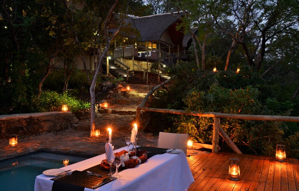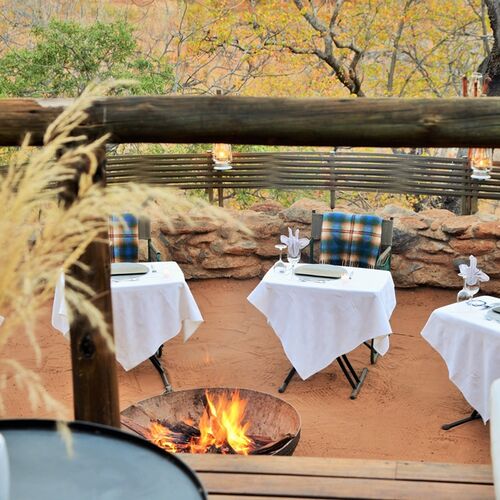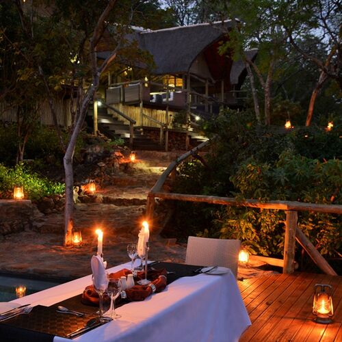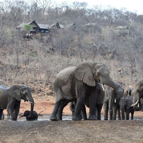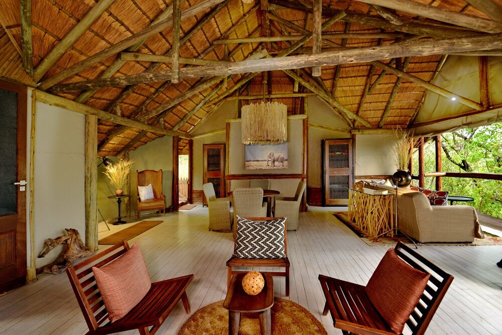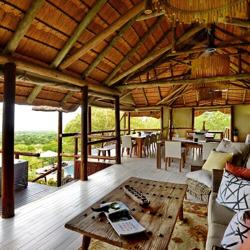 Hovedområdet i lodgen er bygget med stråtag og inkluderer en åben spisestue, bar og hyggelige lounges med udsigt over vandhullet. Der er også en swimmingpool, et fuldt udstyret fitnesscenter og en spa, der tilbyder forskellige massagebehandlinger. En boma (traditionel afrikansk ildplads) giver mulighed for at nyde aftener under stjernerne.
