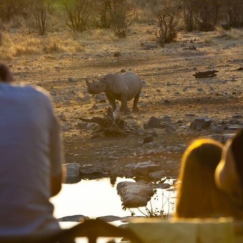 Halali ligger strategisk placeret halvvejs mellem Okaukuejo og Namutoni og ligger ved foden af en bakke blandt skyggefulde Mopanetræer. Fra resortet er der udsigt til et oplyst vandhul, hvor dyrelivet kan opleves dag og nat.