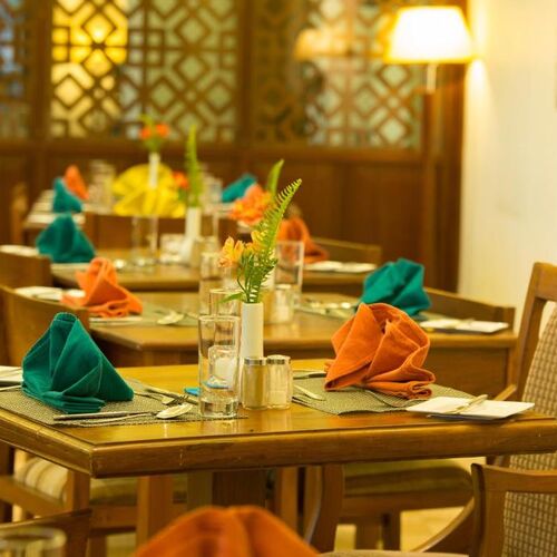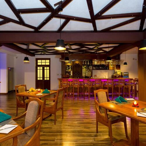 Hotellet har en hyggelig restaurant, hvor du kan nyde lækre Srilankanske måltider, samt et bredt udvalg af internationale retter. Du kan også vælge at få maden bragt til værelset, og køkkenet tilbyder smurte madpakker.