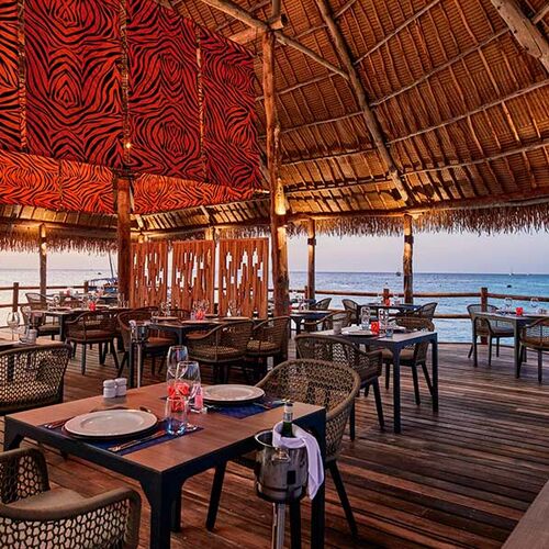 Hotel Riu Jambo tilbyder en bred vifte af spisemuligheder, hvori de bedste smagsoplevelser fra hele verden kan nydes, fra mere traditionelle retter i den asiatiske restaurant til internationale restauranter med show-cooking-stationer og oversøiske à la carte-gourmetrestauranter. De forskellige barer tilbyder forretter, snacks og drinks hele dagen, med RIUs 24-timers all-inclusive service.