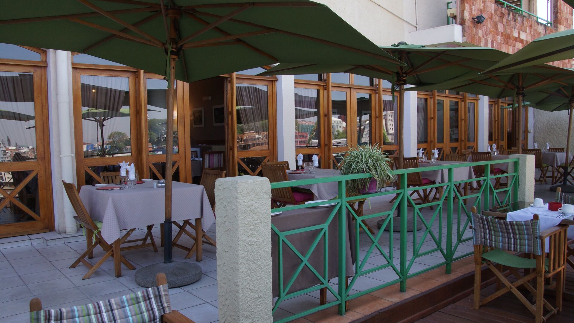Hotellets restaurant er smukt beliggende med en fantastisk panoramaudsigt, som kan nydes sammen med et dejligt måltid.