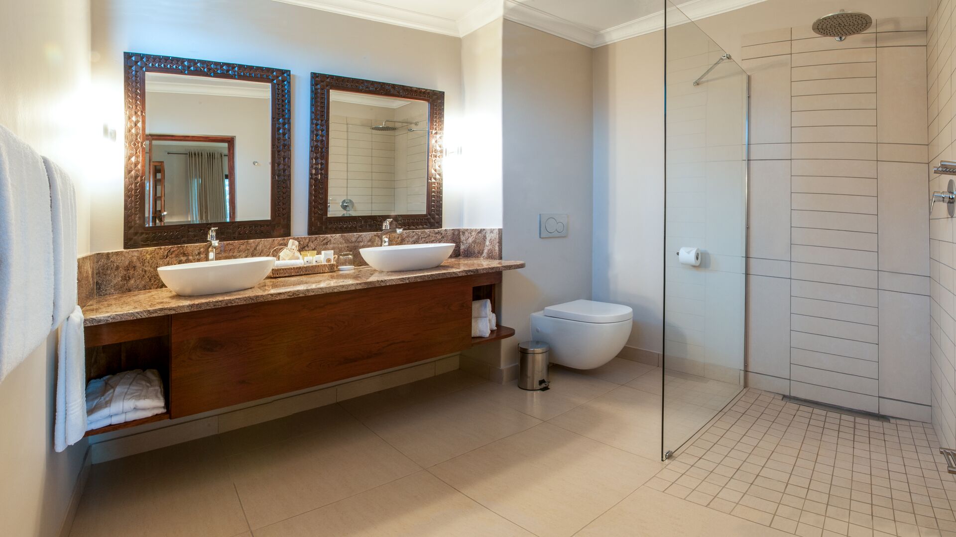 Det lille indkvarteringssted har 34 rummelige værelser i forskellige udformninger, med bad, med badekar og separat brus, som ligger fordelt på bygningens tre etager. På øverste etage har værelserne adgang til balkon med udsigt til stedets pragtfulde omgivelser, mens værelserne på nederste etage har dobbelte franske døre ud til stedets have med mulighed for at opleve vilde græssende gæster på grunden ganske tæt på. De forskellige værelsestyper er standard værelser, standard suiter, delux værelser, executive suiter og strathearn suite. Alle værelser ligger med let adgang til stedets a la carte restaurant, pool og poolside bar samt aktivitetscenter for Victoria Falls oplevelser.