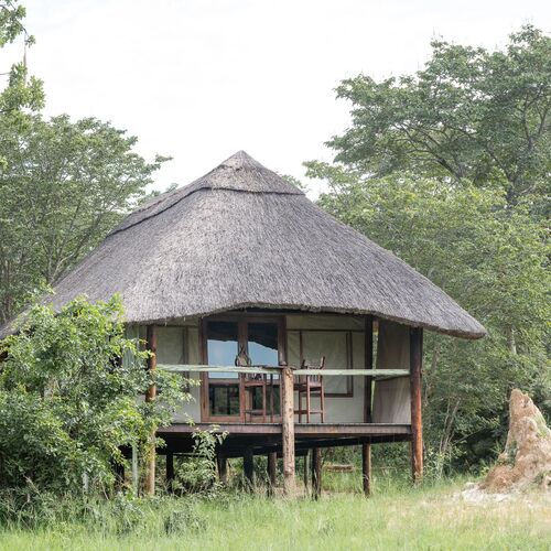 Lodgen består af 9 smukke, træhus-inspirerede stråtækte chalets. Hver chalet er stilfuld med plads til nydelse og fordybelse. Fra hver chalet, kan man sidde i bløde stole og se på stjernene om aftenen eller kigge ud til dyrelivet. Man kan ofte opleve elefanter, bøfler, næsehorn, vilde hunde og forskellige antiloper, der søger til vandhullet for at drikke. Der vil naturligvis også være mange andre varierede dyrearter, der løbende kommer forbi.