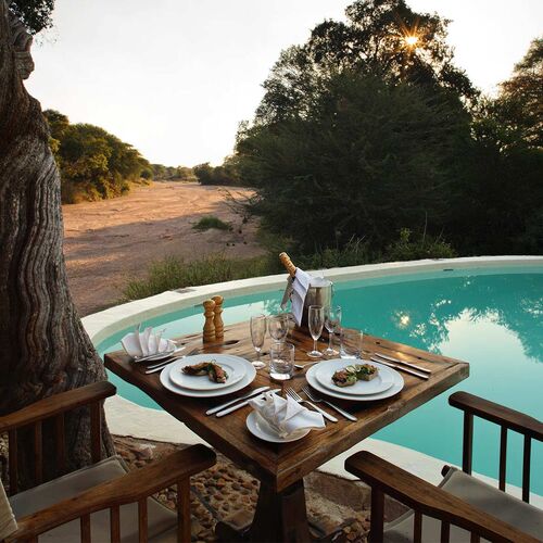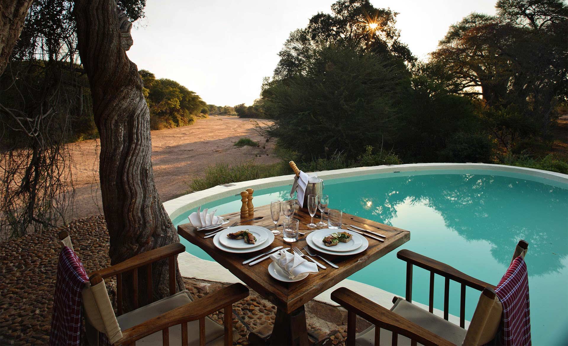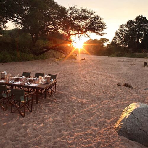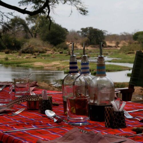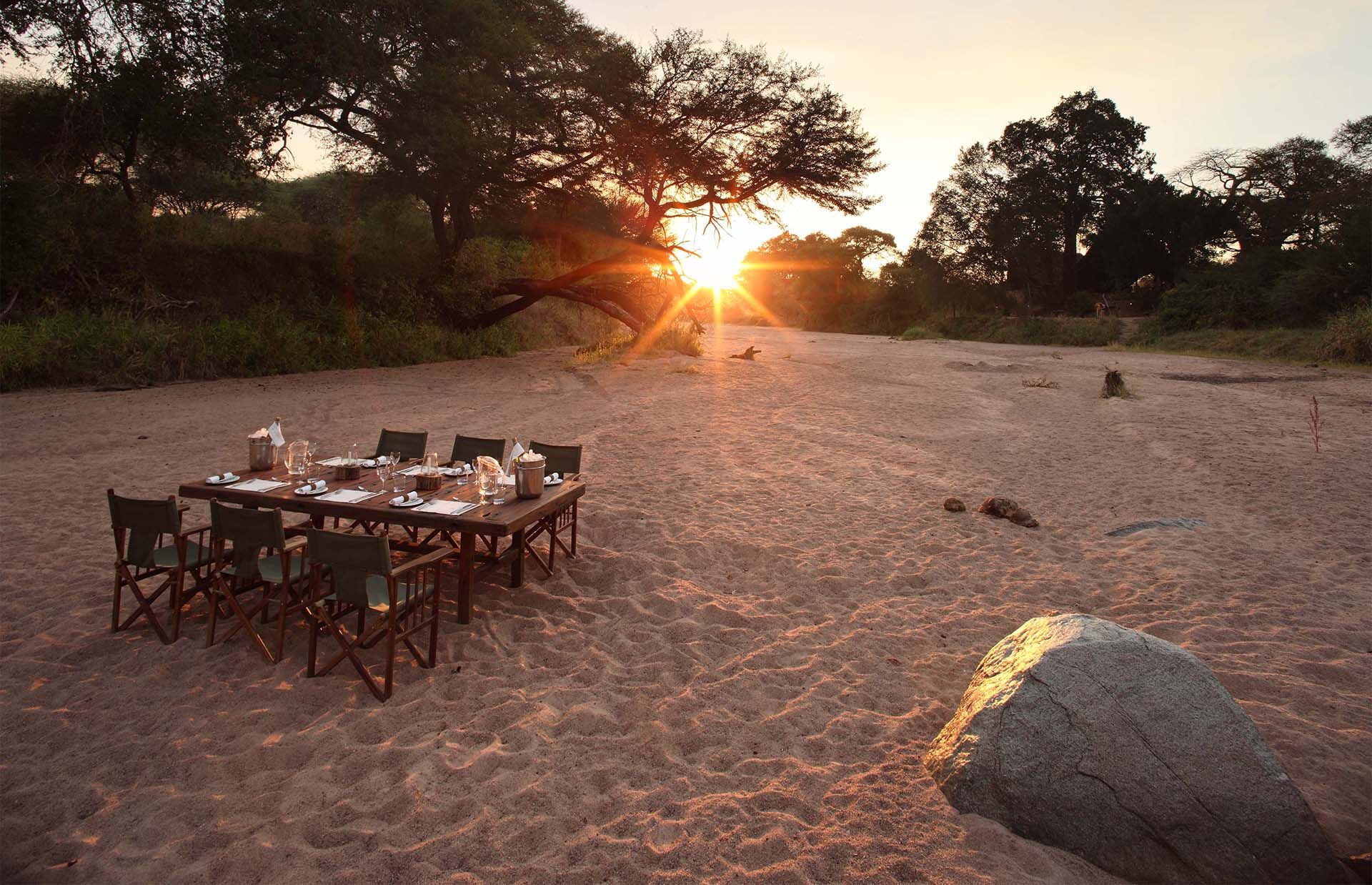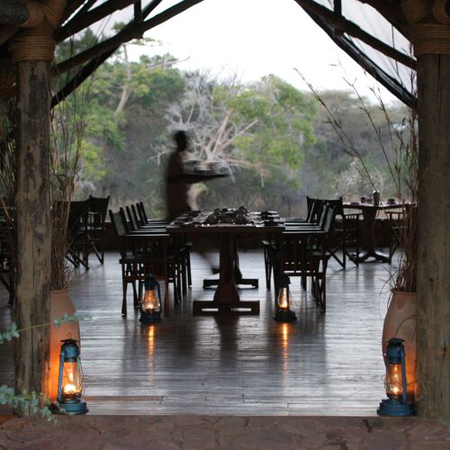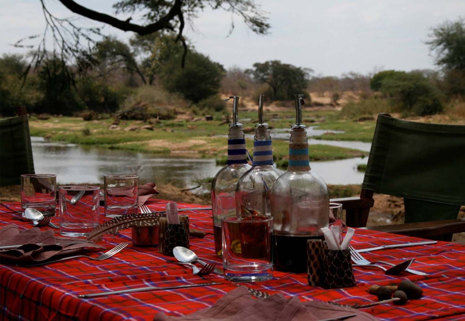 Spise- og opholdsområderne beliggende under et kæmpe ibenholttræ er skønt indrettet, og måltiderne på Jongomero er en del af eventyret, hvad enten man indtager middagen under den afrikanske stjernehimmel, i bålets skær, eller måske på en safari picnic.