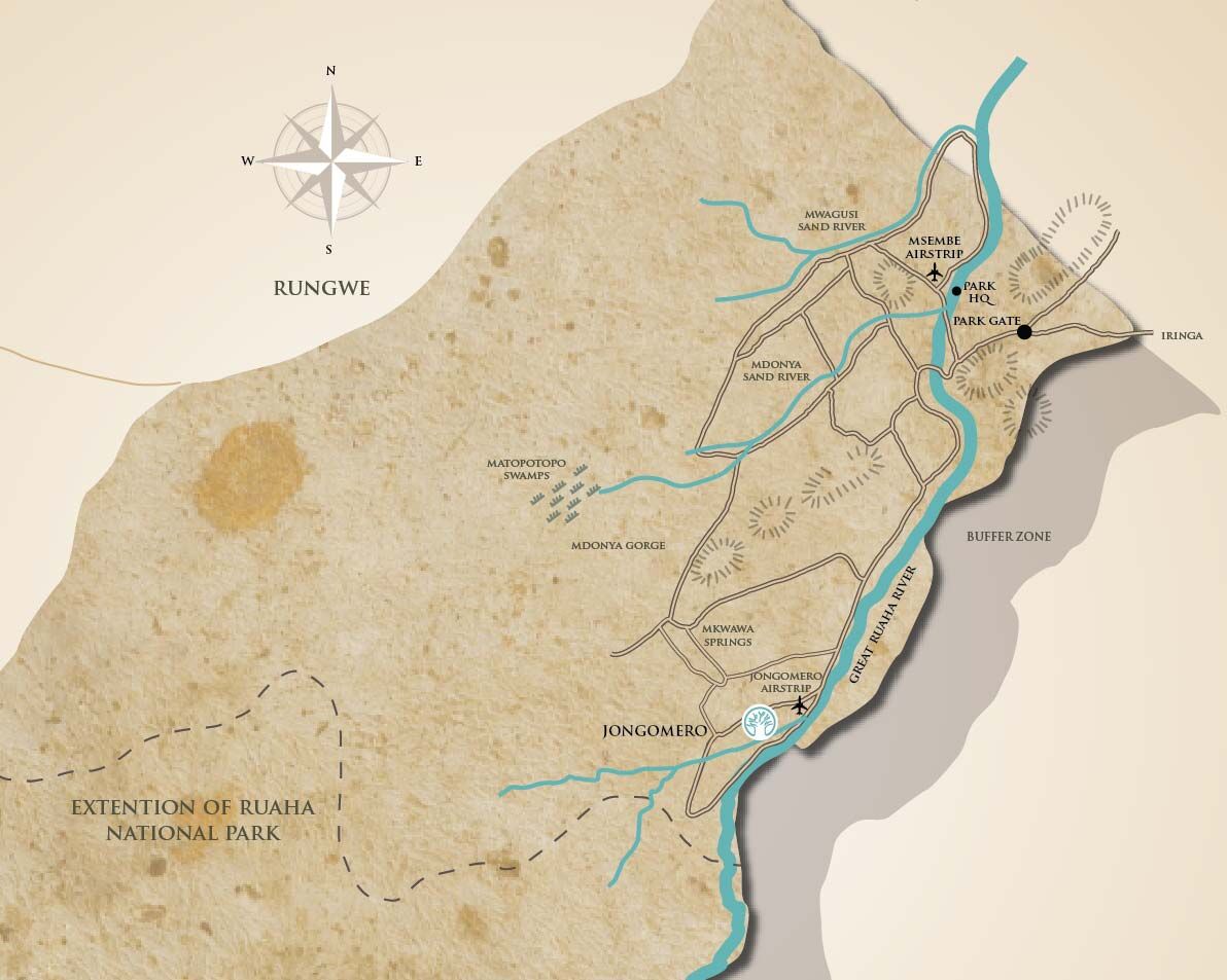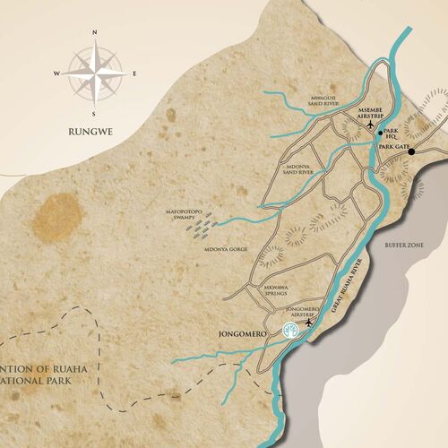Jongomero Camp er en klassisk luksus teltcamp beliggende under skyggefulde acacietræer i den sydlige del af Ruaha på bredden af Jongomero floden. Floden er kun vandførende en del af året, men uanset årstid er der altid et spændende dyreliv i og langs floden. Jongomero er den eneste camp i denne del af parken, hvilket sikrer en følelse af at have hele området for sig selv.
