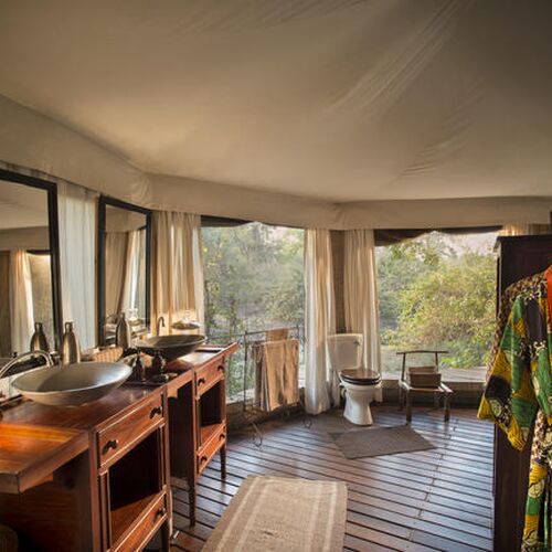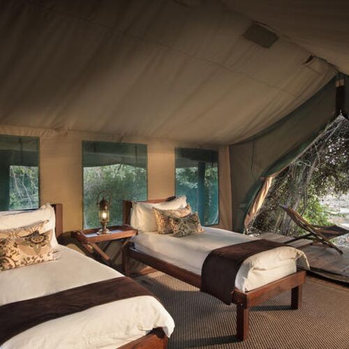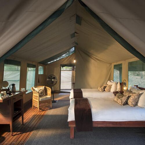 Campens seks telte er alle hævet på en træplatform for at give en bedre udsigt over Kanga-søen. Alle telte er simpelt, men elegant designet med vinduer fra gulv til loft, som giver masser af naturligt lys inde i teltet. Alle telte har eget badeværelse og egen terasse.