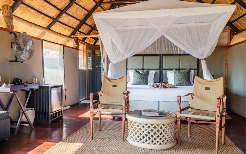 Består af 7 stråtækte safari-stil kanvas-suiter, bygget på platforme, samt 2 luksus honeymoon suiter. Værelserne er elegante og moderne. Hvert værelse/telt har en indendørs og udendørs bruser, en balkon, hvor man kan sidde og kigge på dyr, samt the og kaffe faciliteter og bar-køleskab. Luksus suiterne har desuden udendørs badekar. Sengene er enkeltsenge, men kan alle konverteres til king-size dobbeltsenge. Ingen børn under 12 år her, medmindre Lodgen bookes eksklusivt.