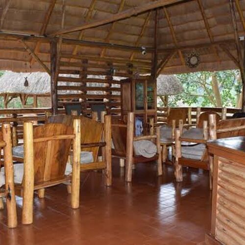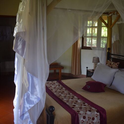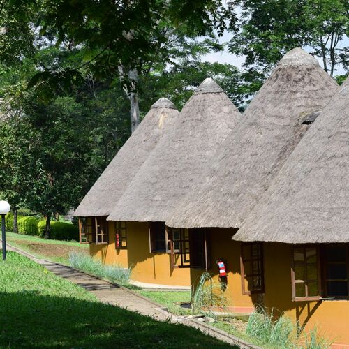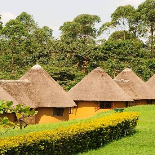 Kibale Guest Cottages er en smuk og naturlig samling af hytter, placeret ved Kibale National Park. Hytterne fordelt i haven med nær afstand til hovedbygningen. Der er stråtag på hver hytte og stenene på bygningen er i rustorange farver, som giver et hyggeligt og safaripræget udtryk. Der er myggenet over sengene og alle hytter har udsigt over haven og til regnskoven. Der er kun 5 minuters kørsel til Kibale National Park. Parken, hvor safari med chimpanser finder sted.