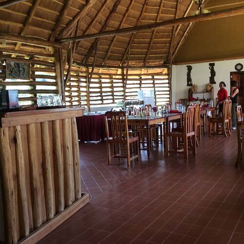 Om aftenen dækkes op i den delvis åbne restaurant, hvor der emmer af hygge og nærvær. Der er tillige et loungeområde, hvor man kan sidde og nyde en god kop friskbrygget kaffe. Lodgens kaffebar er særlig populær iblandt gæster på grund af hvor god kaffen smager. Der kan om aftenen være arrangeret lokale eller musik, som kommer og spiller under aftensmaden. Køkkenet kan også servere barbeque i haven.
