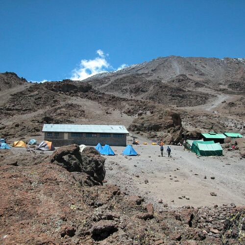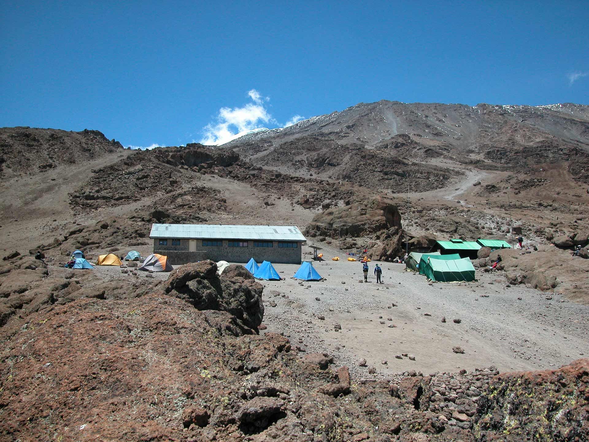 Kibo Hut er beliggende i den bare alpine ørken i 4.730 meters højde, og består af et stort stenhus med køjer til 60 bjergbestigere og er det sidste stop inden toppen af Kilimanjaro.